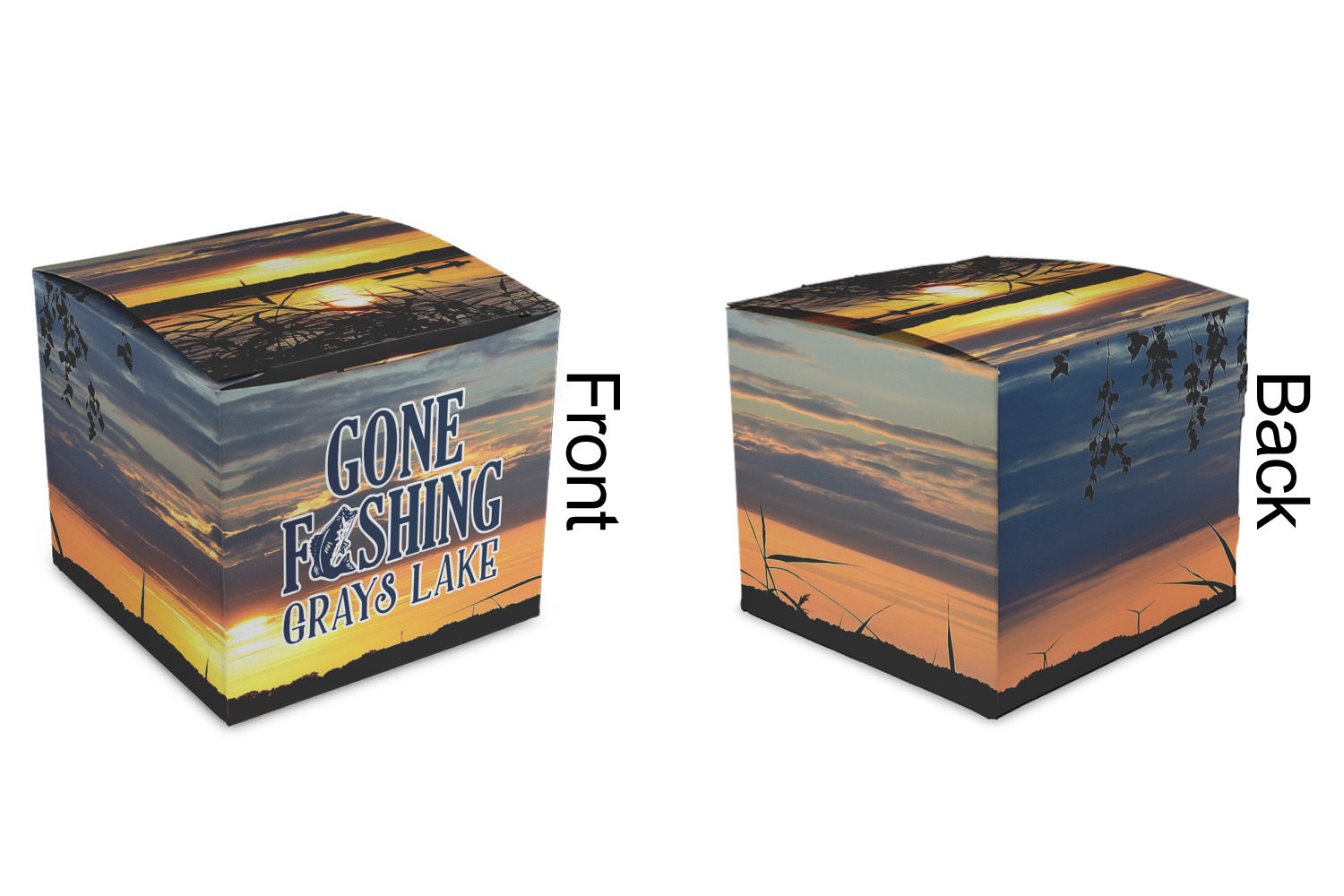 These cubic favor boxes are printed in full color on premium heavyweight cardstock that has a smooth semi-gloss finish.