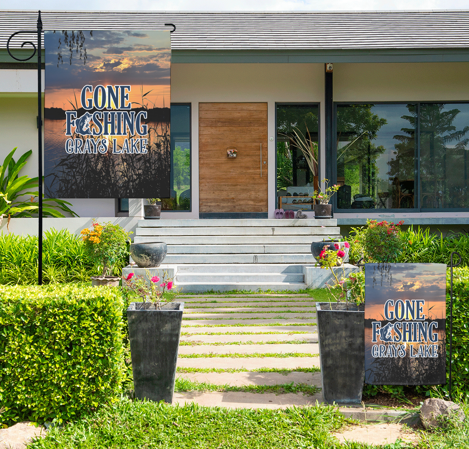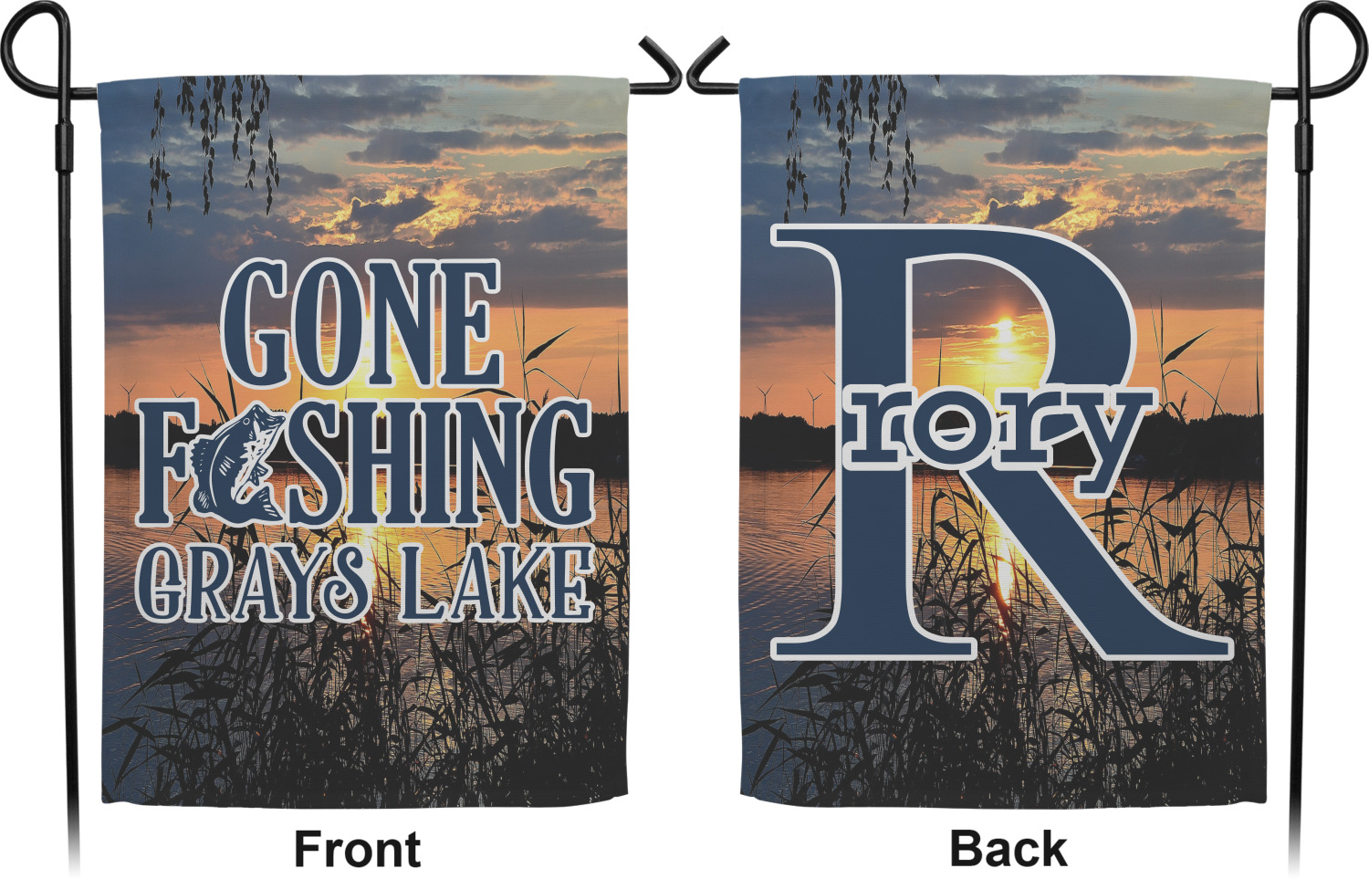 These custom garden flags are made of a durable, double-ply, polyester weave, allowing them to withstand the elements year round. The small flags measure at approximately 12 by 18 inches. The large flags measure out to 28 by 37 inches. You can order these decorative flags with your customization printed on the front only, or the front and back.