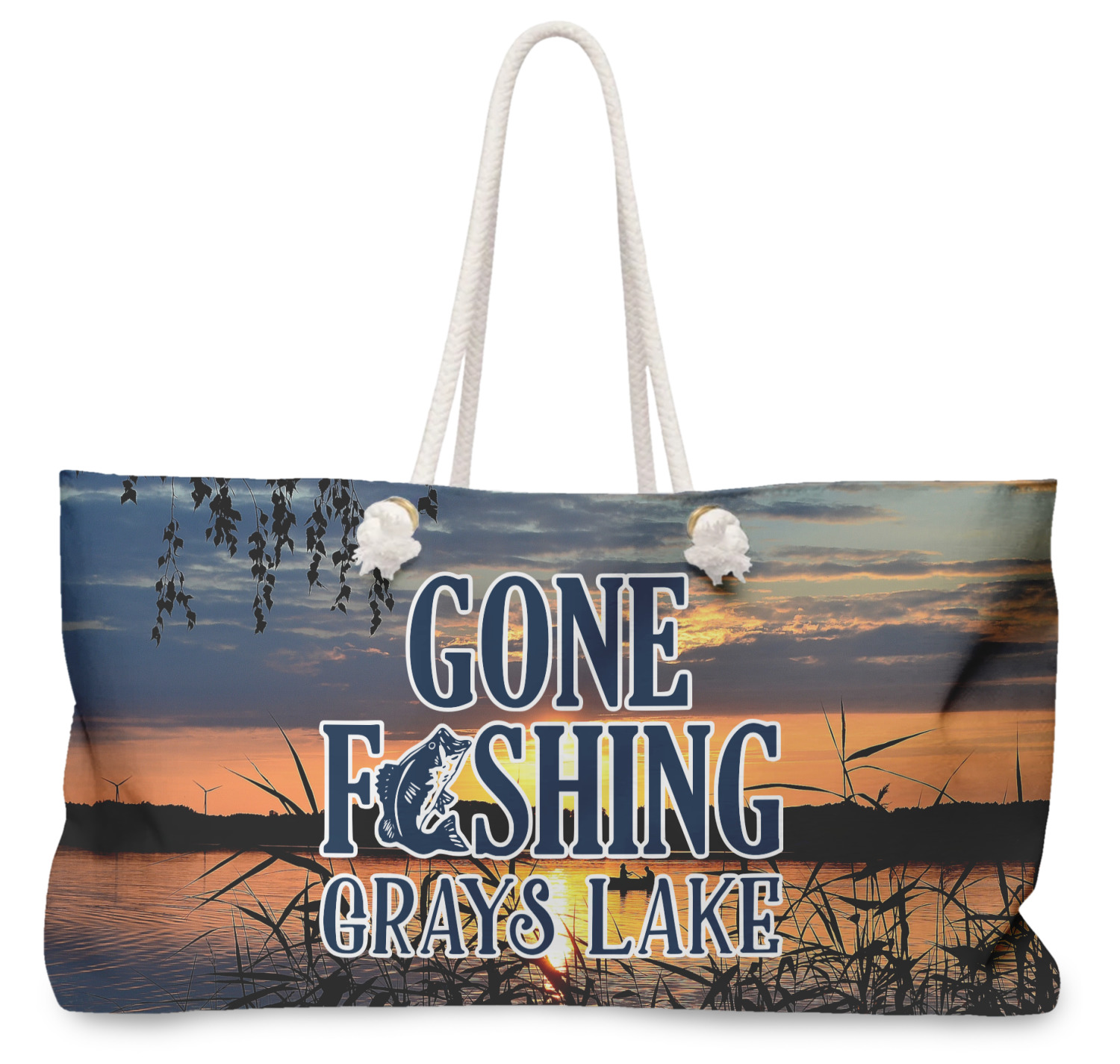 Our oversized weekender tote with rope handles is perfect for your weekend at the beach or on the town. This large tote are 24" W X 13" H, with a 5" gusset and a 27" thick rope handles with a knot that is put through a grommeted brass hole.