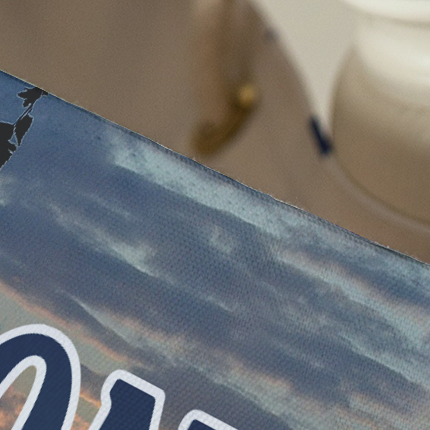 These large totes are handmade i.e. printed, cut and sewn right here in the USA. The canvas like material is printed using dye sublimation; the fabric is then cut and sewn along with a beautiful cream colored lining (to match the rope handles). The brass grommets are then added and the cream colored rope if fed through the grommets and knotted.