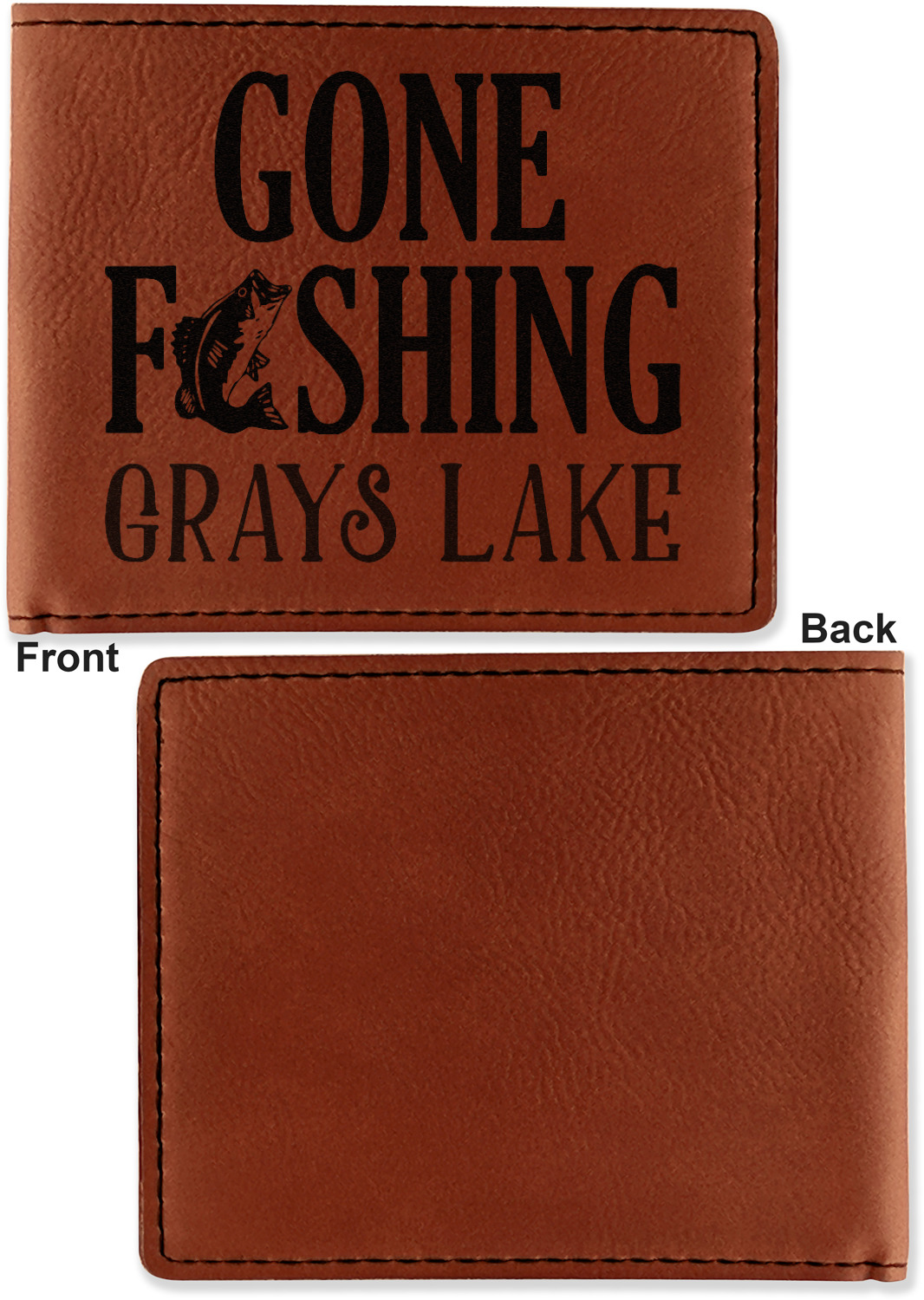 Your bifold wallet will be personalized by laser engraving, which will be a black color on the wallet. Choose a graphic, text, or monogram to personalize your wallet. There are thousands of choices in our design center.