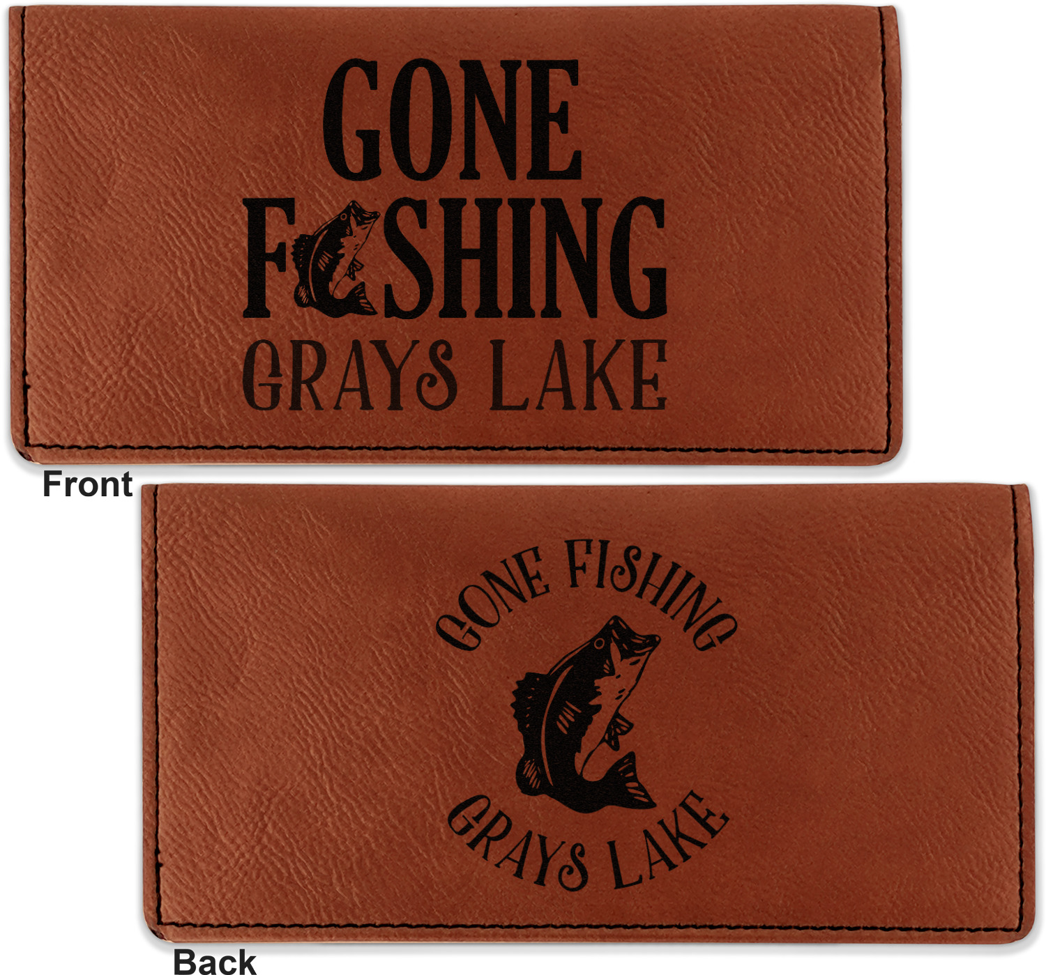 Go into our design center to start personalizing. Your checkbook cover will be laser engraved, making the graphic or text a black color. Choose a fun saying, monogram, or font to go on your checkbook cover. You have the opportunity to do it double or single sided.