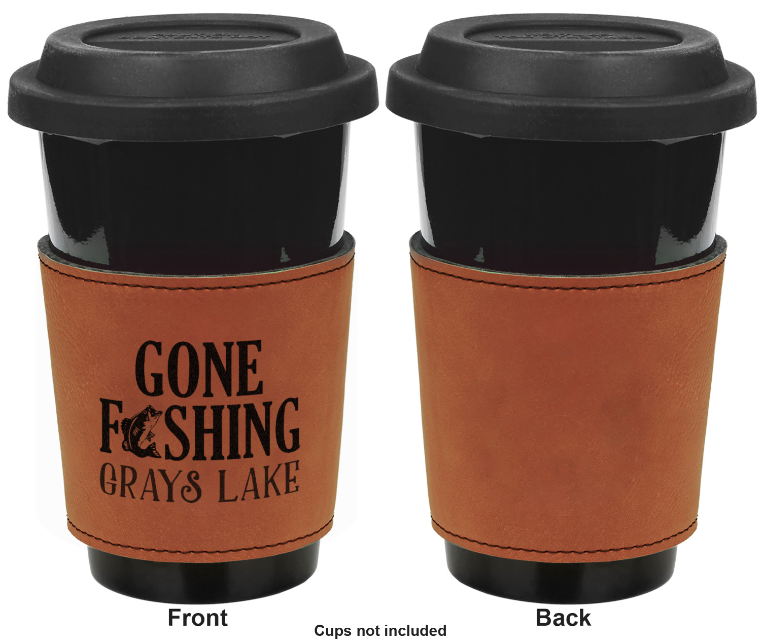 This cup sleeve is made from a suave, cognac-brown leatherette and finished with an intricate, black stitch. The interior of this can sleeve is fabricated from a thin foam material to help insulate your mug's contents. The sleeve is specifically made to suit tapered glasses or mugs, so the top's diameter is 3.5 inches, while the bottom's diameter is 2.75 inches. Your customized design will be laser engraved into the leatherette, leaving behind crisp, black imprint. With these products, we provide you with the option of engraving the front and back, or the front only.