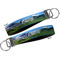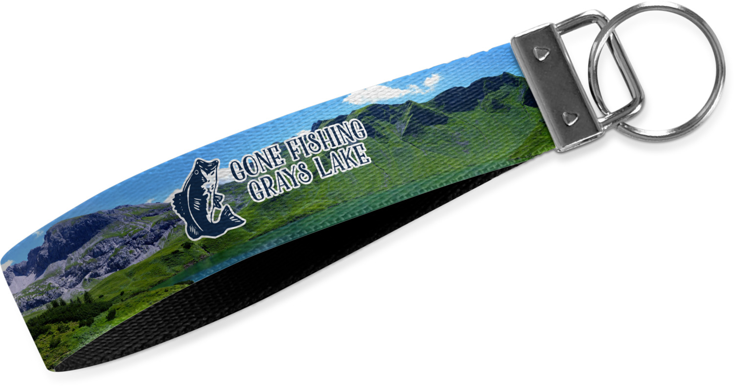 These key fob keychains are made from a polyester weave, right here in the USA. They feature a silver, metal clasp, attached to a round keyring. The piece gives the personalized wristlet a beautiful, finished look. Your customized design is printed on the outside of the keychain strap. We carry these wristlets in two sizes: small, which is 5 inches in width, and large, which is 5.5 inches in width.