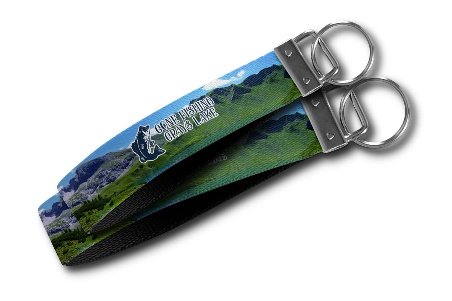 These key fob keychains are made from a polyester weave, right here in the USA. They feature a silver, metal clasp, attached to a round keyring. The piece gives the personalized wristlet a beautiful, finished look. Your customized design is printed on the outside of the keychain strap. We carry these wristlets in two sizes: small, which is 5 inches in width, and large, which is 5.5 inches in width.