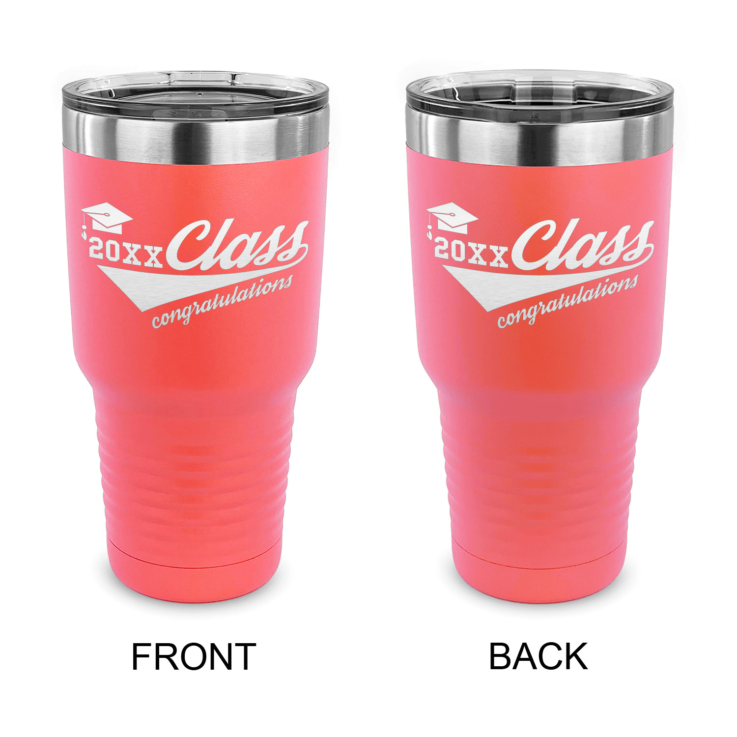 With the 5 colors - Black, Navy, Red, Pink and Coral, you are sure to find a cup to fit your personality. You can chose to engrave on the front or the front and back of the cup. Use our design studio to design your own cup and we laser engrave it for you.
