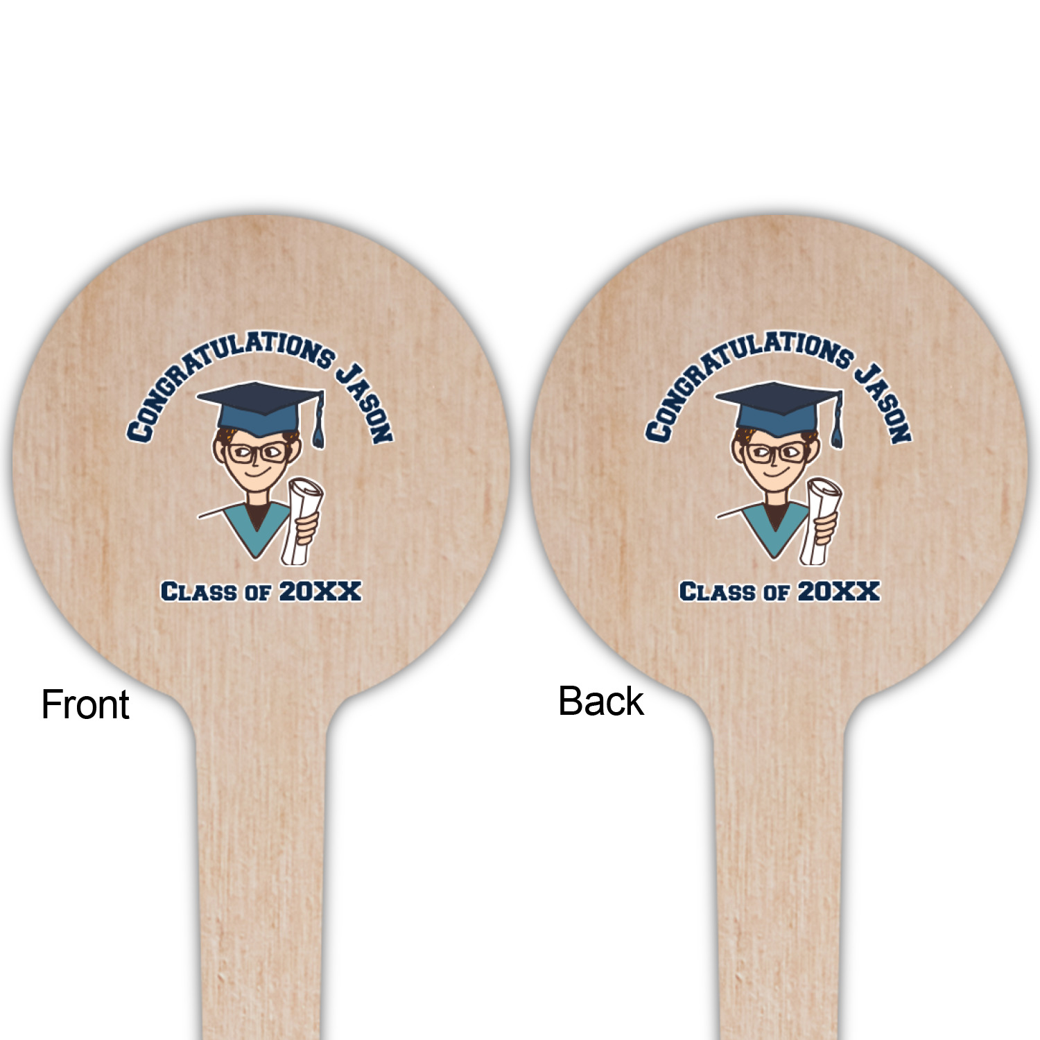 For our design, we chose the layout with a single background & a graphic & text personalization style. We chose a boy graduate as our graphic and added congratulations and his class year as the personalization text. We have many of the other graduates from the background in our system, so you can select a graduate that resembles your graduate more closely. You can also customize the graduate more by changing the graduate's skin, hair & stole colors.
