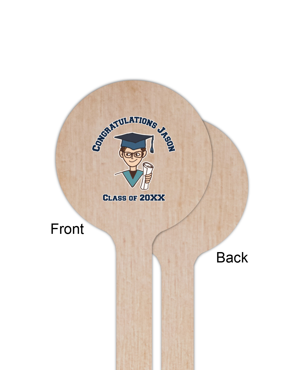 For our design, we chose the layout with a single background & a graphic & text personalization style. We chose a boy graduate as our graphic and added congratulations and his class year as the personalization text. We have many of the other graduates from the background in our system, so you can select a graduate that resembles your graduate more closely. You can also customize the graduate more by changing the graduate's skin, hair & stole colors.