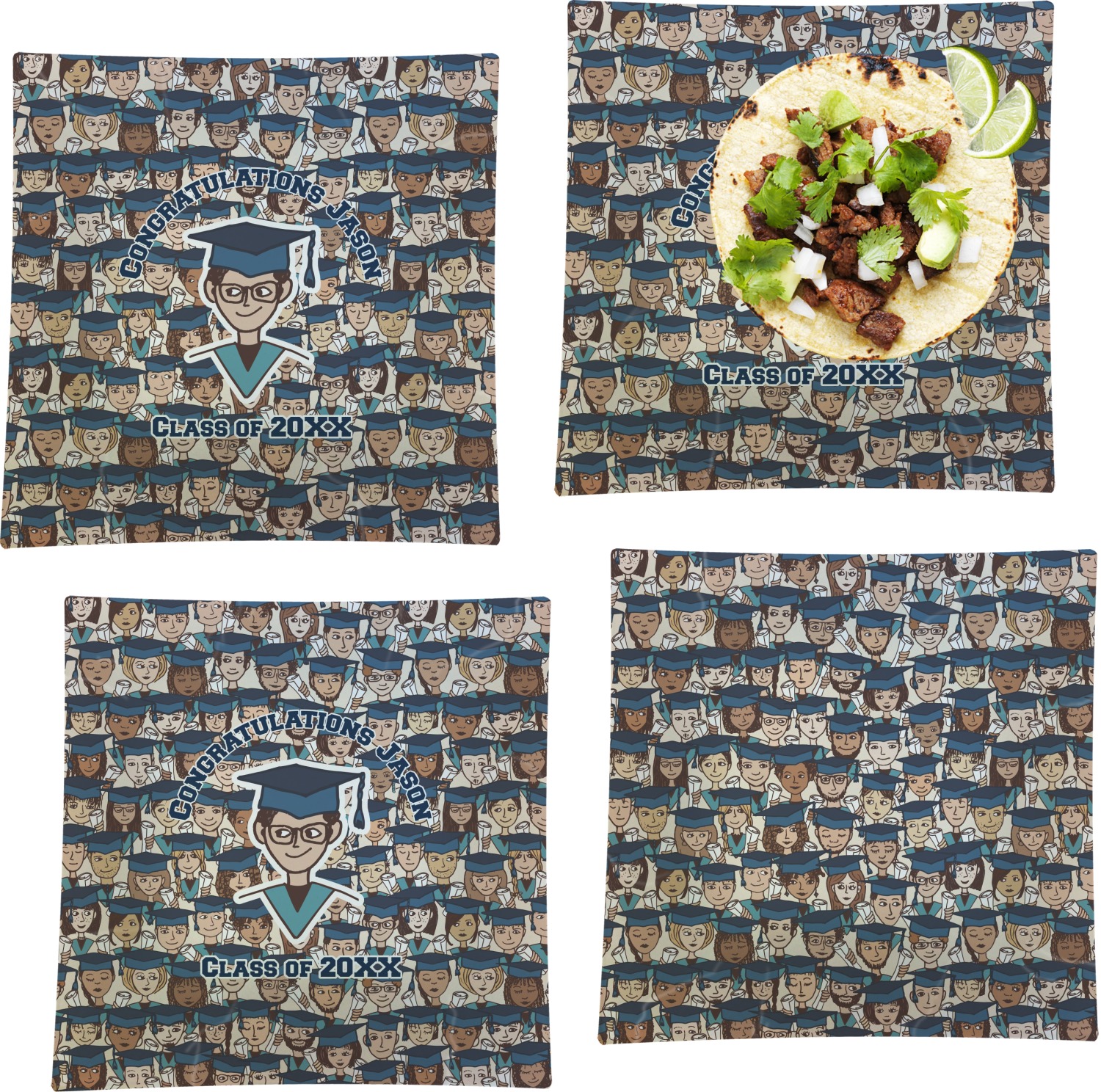 For our design, we chose the layout with a single background & a graphic & text personalization style. We chose a boy graduate as our graphic and added congratulations and his class year as the personalization text. We have many of the other graduates from the background in our system, so you can select a graduate that resembles your graduate more closely. You can also customize the graduate more by changing the graduate's skin, hair & stole colors.