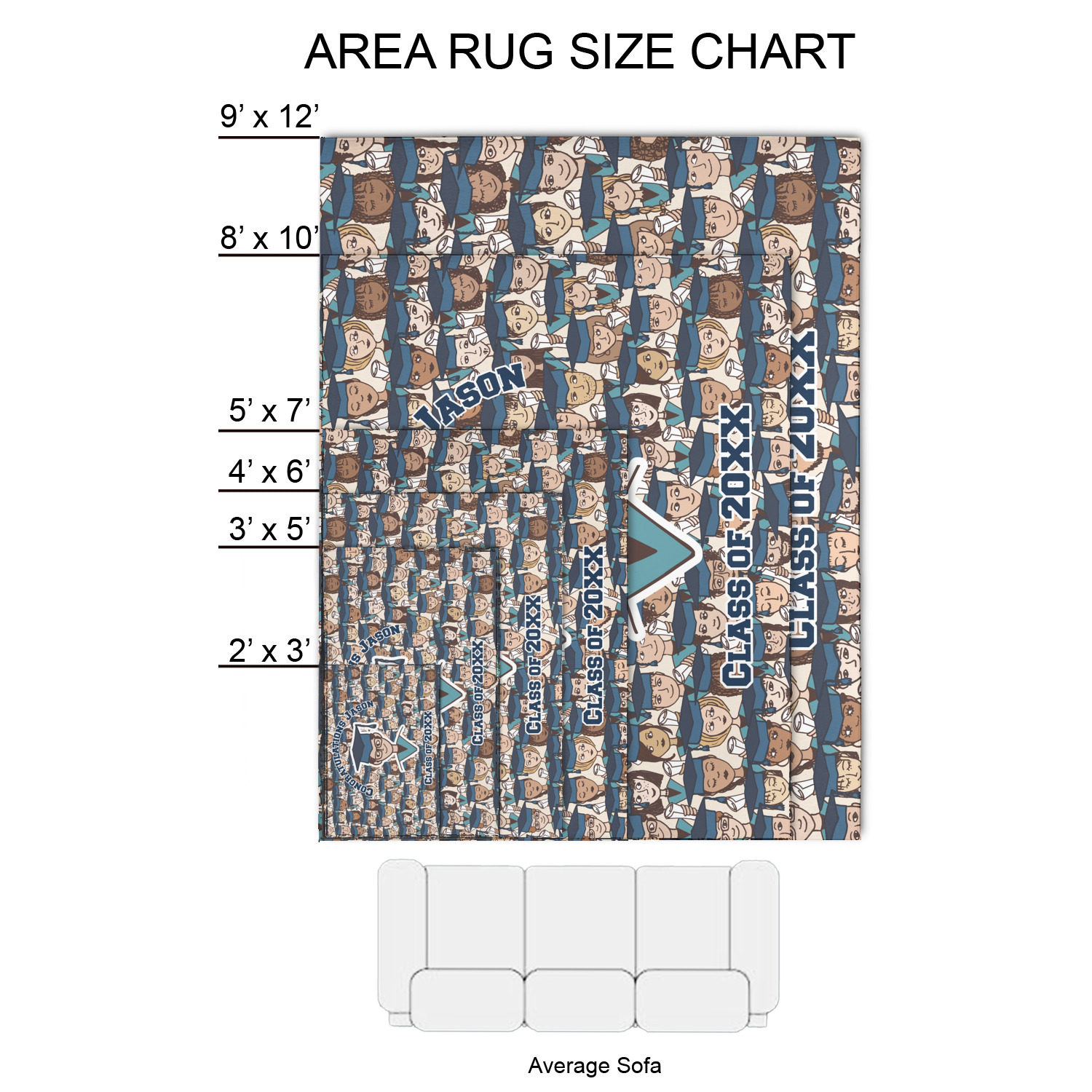 Our area rugs are available in multiple sizes; they are listed below:
