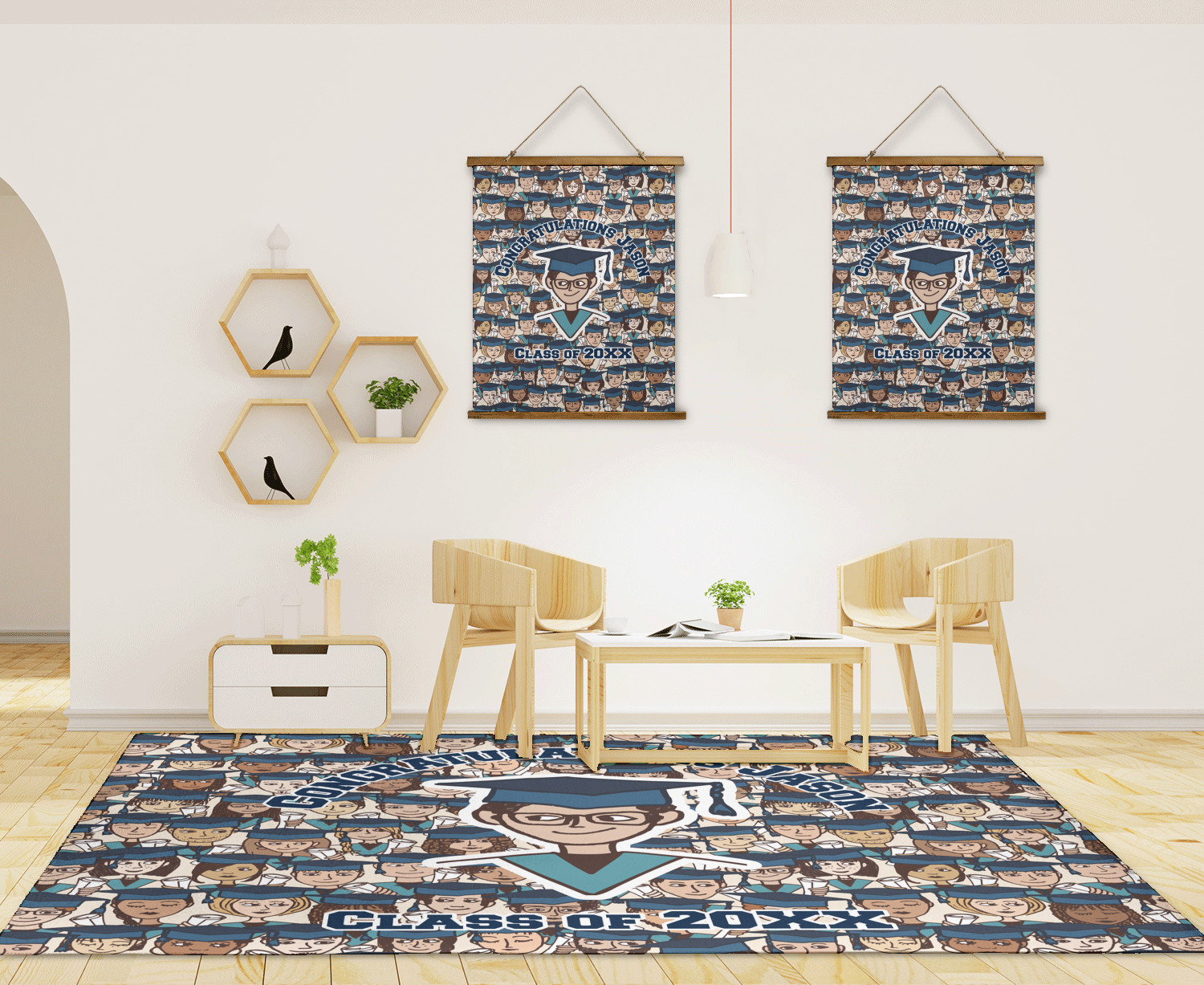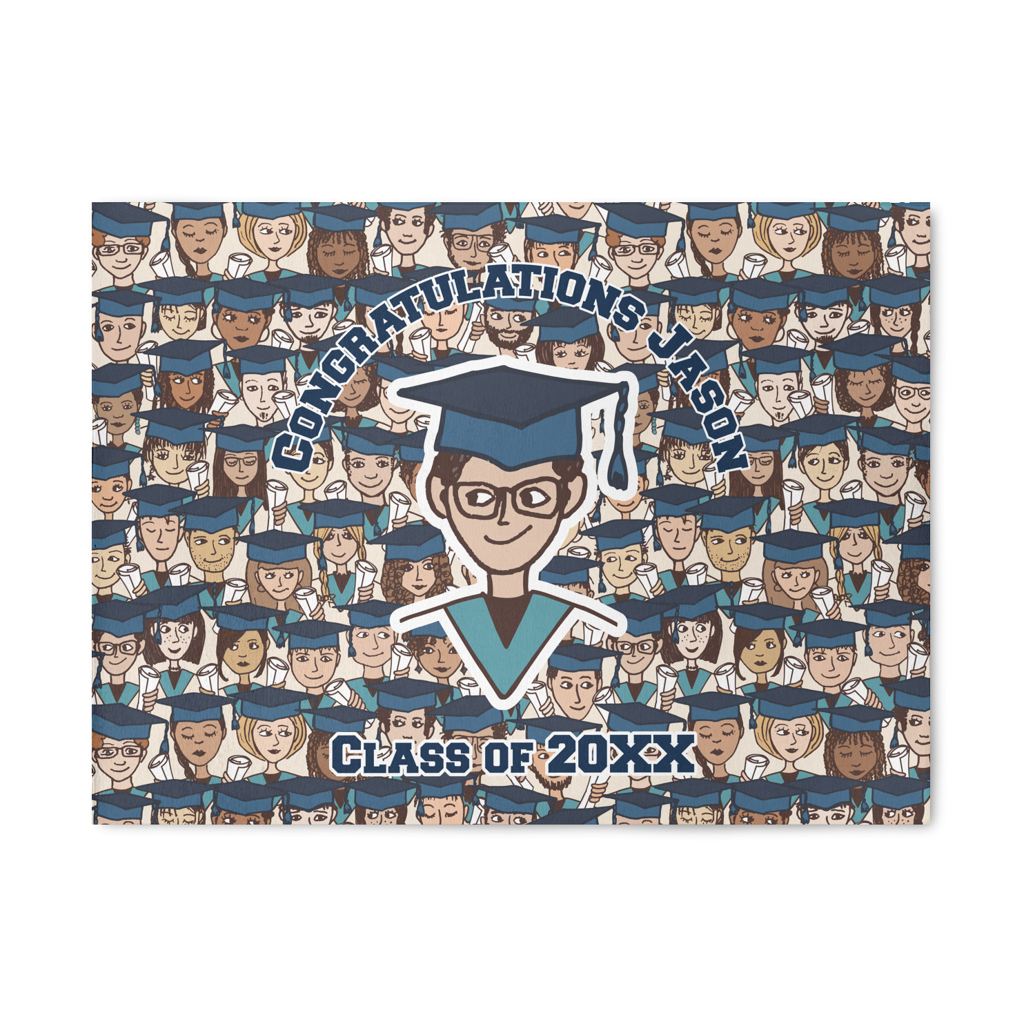 For our design, we chose the layout with a single background & a graphic & text personalization style. We chose a boy graduate as our graphic and added congratulations and his class year as the personalization text. We have many of the other graduates from the background in our system, so you can select a graduate that resembles your graduate more closely. You can also customize the graduate more by changing the graduate's skin, hair & stole colors.