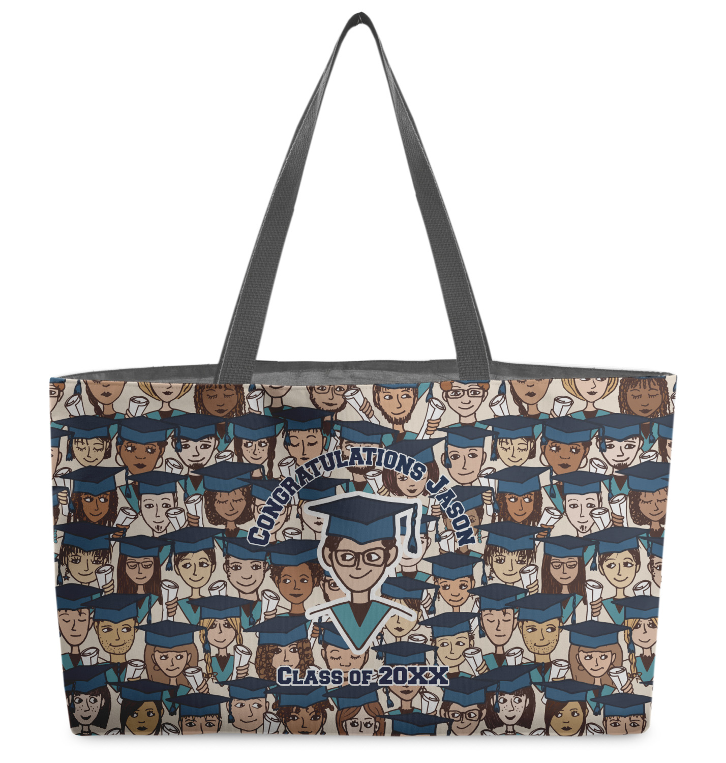 These beach totes are handmade here in the USA. Fabric is printed with your design. The tote is then sewn from the fabric pieces, lining and handles added.