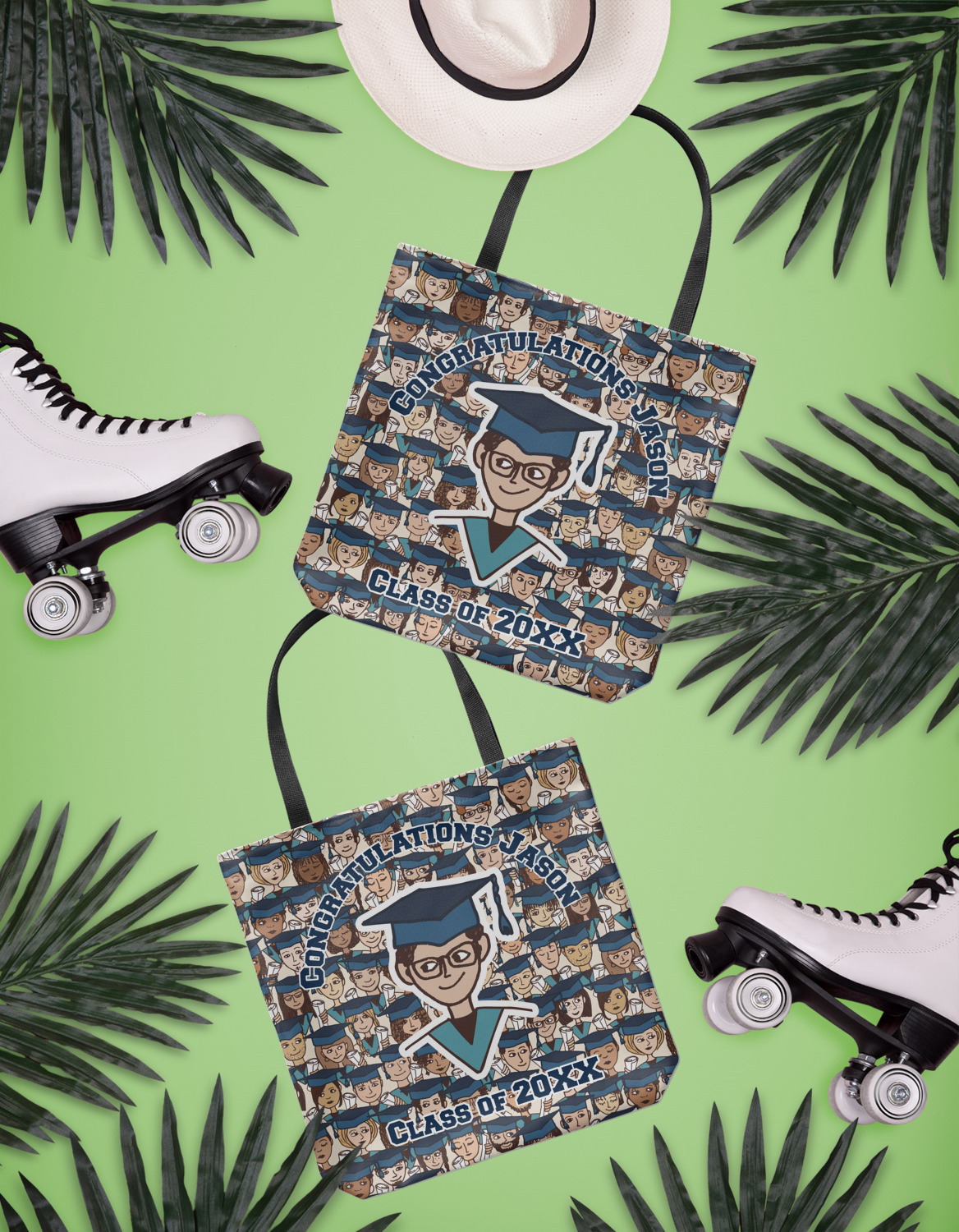 For our design, we chose the layout with a single background & a graphic & text personalization style. We chose a boy graduate as our graphic and added congratulations and his class year as the personalization text. We have many of the other graduates from the background in our system, so you can select a graduate that resembles your graduate more closely. You can also customize the graduate more by changing the graduate's skin, hair & stole colors.