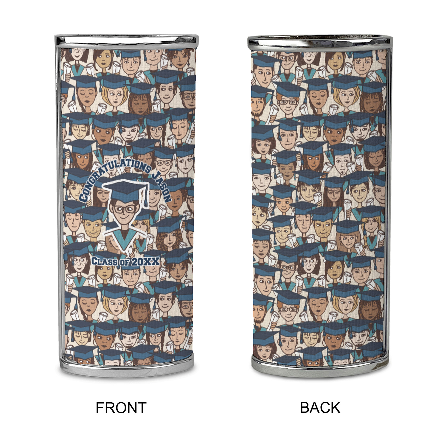 For our design, we chose the layout with a single background & a graphic & text personalization style. We chose a boy graduate as our graphic and added congratulations and his class year as the personalization text. We have many of the other graduates from the background in our system, so you can select a graduate that resembles your graduate more closely. You can also customize the graduate more by changing the graduate's skin, hair & stole colors.