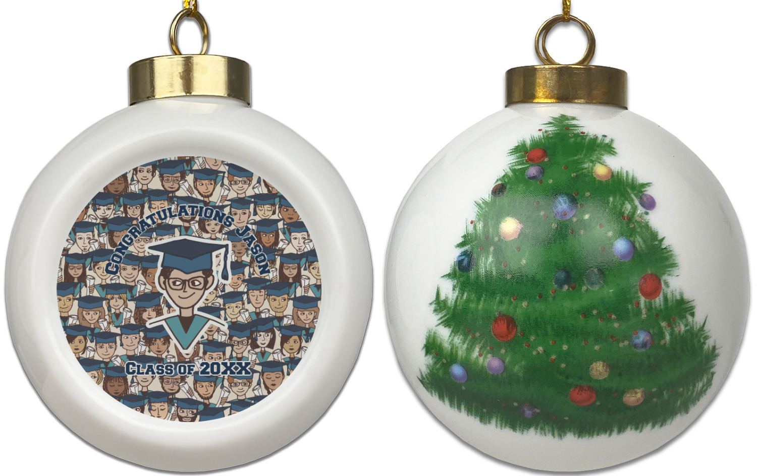 Our Christmas ornaments are a unique ceramic ball shape with a twist as it has a flat face to display your custom design! Select from one of our two design types - Christmas Tree or Poinsettia Garland - to adorn the curved back of your personal design. Each ornament measures 3H x 2.5W x 2D accompanied with a gold string accent for finishing touches to hang on your beautiful Christmas tree!