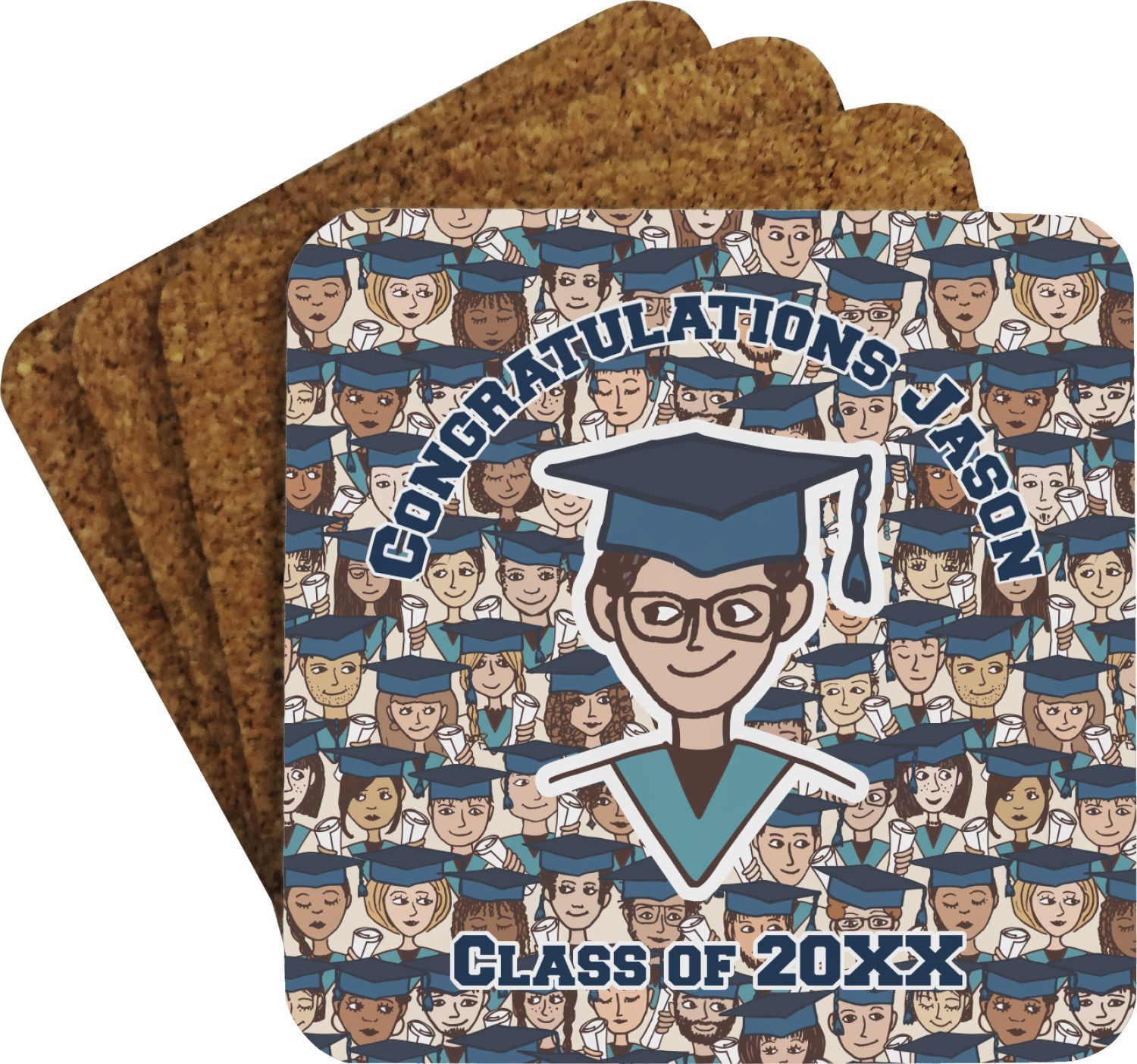 Your custom coasters have a smooth, laminated top and a cork bottom to prevent any unwanted slippage. We print your customized design atop this laminated surface, in bright and vibrant colors.
