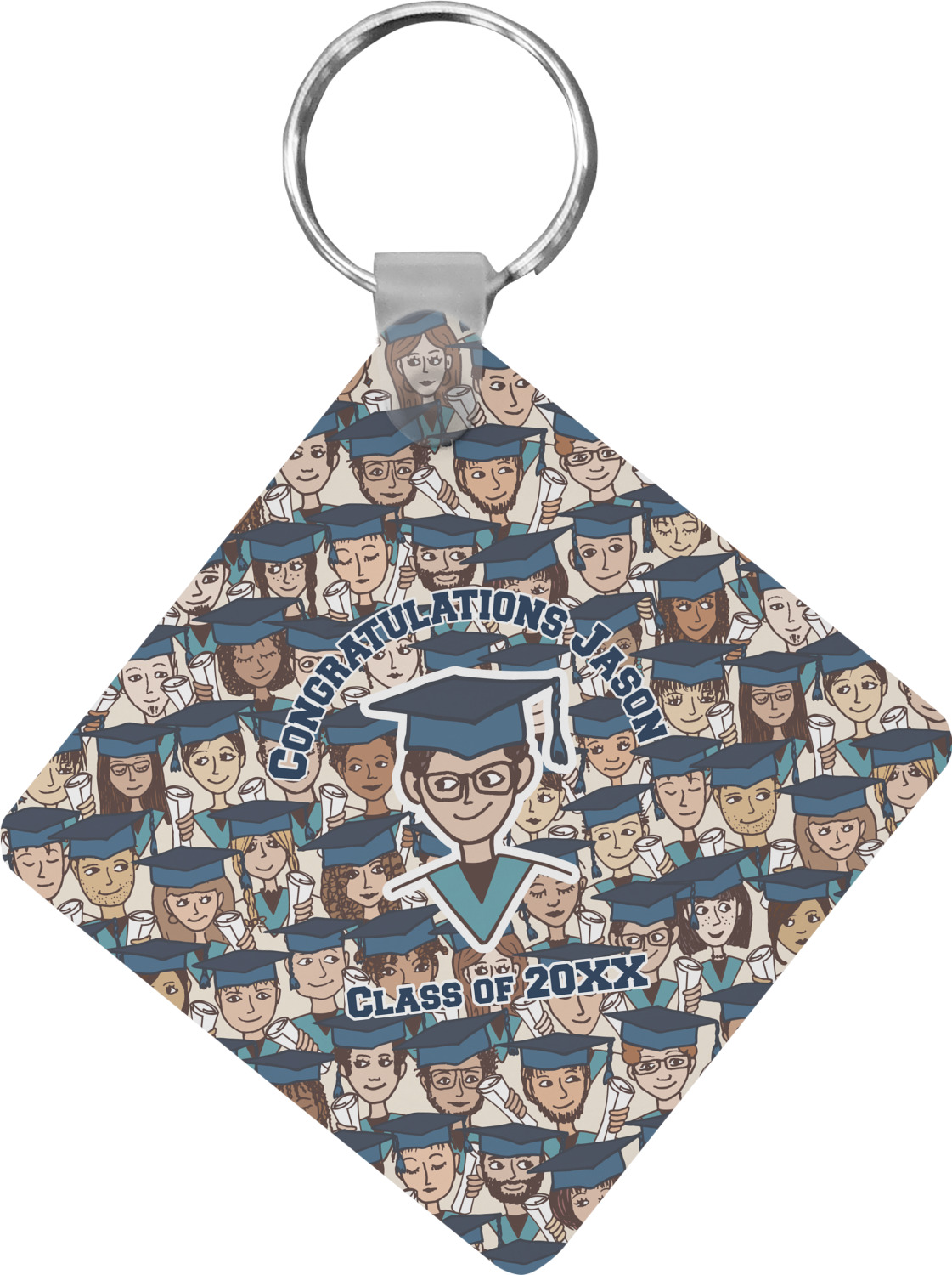 Our personalized keychains attach to the included metal, split key ring with a plastic, removable snap. Since a metal ring is included with your purchase, you have the liberty to keep your keys together on the ring, with or without your unique keychain. We offer this keychain in three different shapes: circle, heart, or diamond. We print your personalized design(s) on both sides of the key chain, and the surface has a glossy, reflective finish that only emphasizes your design. Each keychain is approximately 2.25 by 2.25 inches.