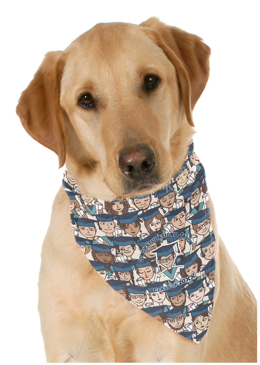 This beautiful pet bandana really is the perfect accessory. It is made from a silky feeling polyester and measures at approximately 23" x 23". Your personalization will be printed on a diagonal, so that you are able to read the personalization when folded into a triangle. This bandana fits best on large dogs, but can be folded smaller if there is no personalized text to fit smaller pets.