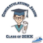 For our design, we chose the layout with a single background & a graphic & text personalization style. We chose a boy graduate as our graphic and added congratulations and his class year as the personalization text. We have many of the other graduates from the background in our system, so you can select a graduate that resembles your graduate more closely. You can also customize the graduate more by changing the graduate's skin, hair & stole colors.