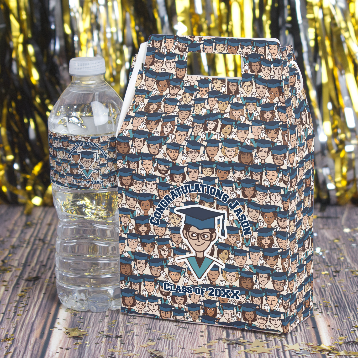 For our design, we chose the layout with a single background & a graphic & text personalization style. We chose a boy graduate as our graphic and added congratulations and his class year as the personalization text. We have many of the other graduates from the background in our system, so you can select a graduate that resembles your graduate more closely. You can also customize the graduate more by changing the graduate's skin, hair & stole colors.