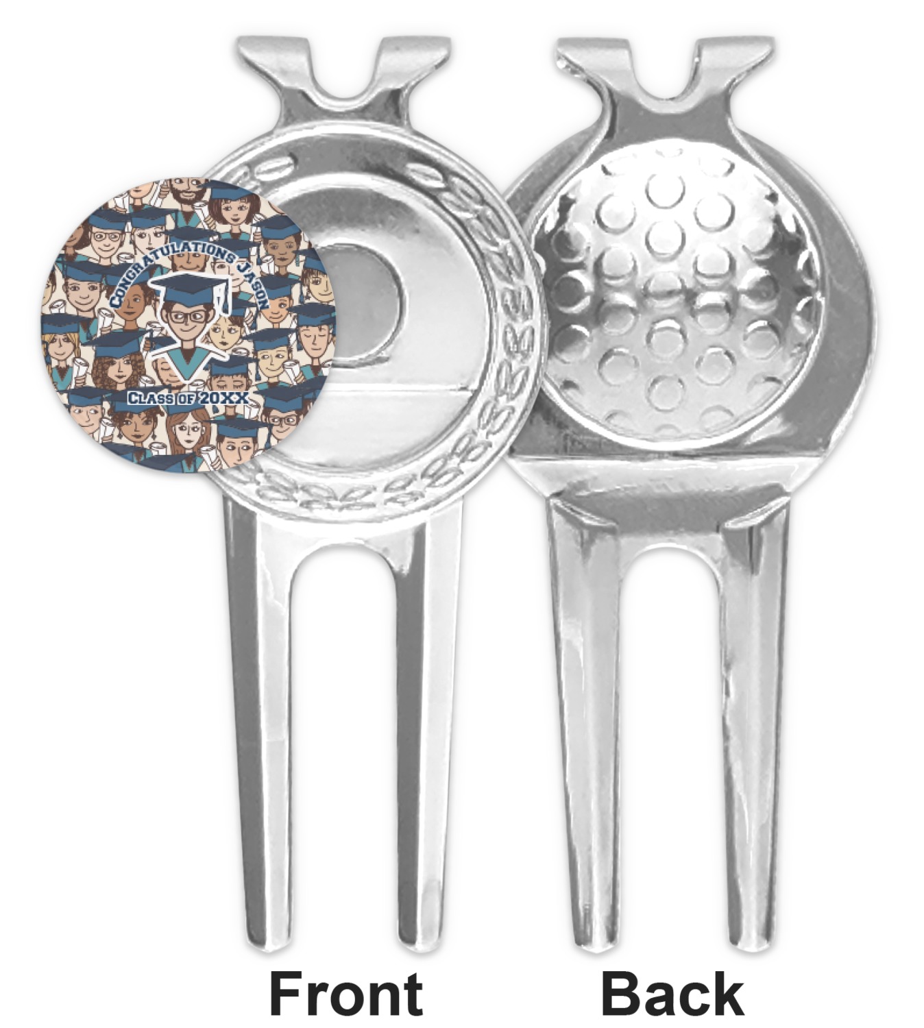 This great little stainless steel divot tool is two-pronged and is approximately 3.25" x 1.5". The two prongs make is a breeze to fix any divots. There is a golf ball shaped place on the back of your tool where your thumb can sit in order to do this easily.