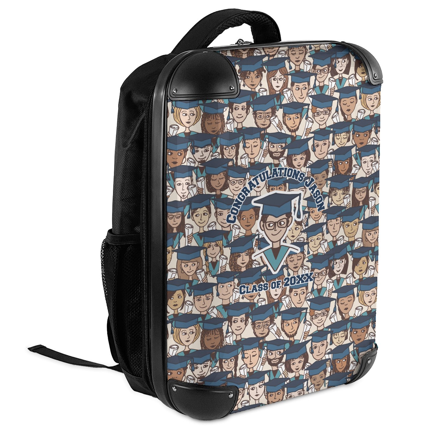 For our design, we chose the layout with a single background & a graphic & text personalization style. We chose a boy graduate as our graphic and added congratulations and his class year as the personalization text. We have many of the other graduates from the background in our system, so you can select a graduate that resembles your graduate more closely. You can also customize the graduate more by changing the graduate's skin, hair & stole colors.