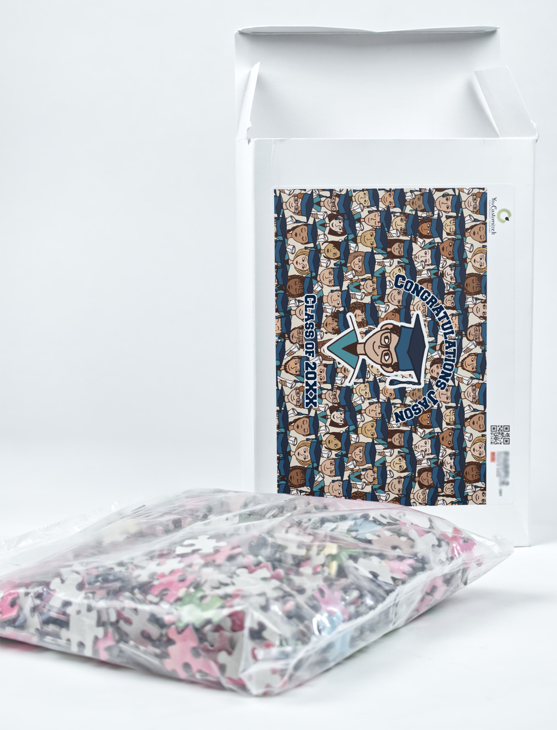 You can also upload your logo or art that you or your kids drew. To create more challenging jigsaw puzzles, you can create a pattern from with your logo or artwork. You can also add other elements such as text or personalization.