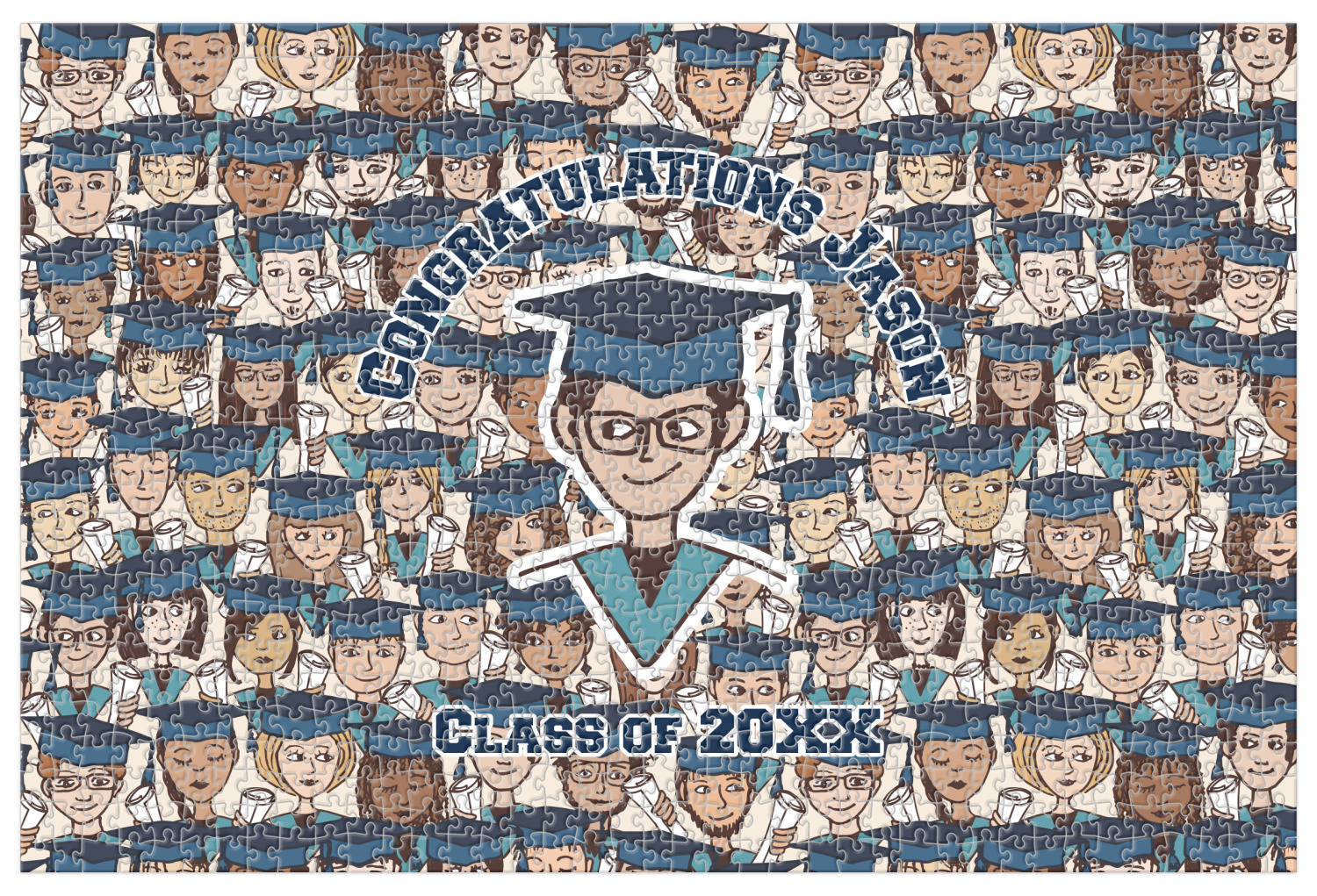For our design, we chose the layout with a single background & a graphic & text personalization style. We chose a boy graduate as our graphic and added congratulations and his class year as the personalization text. We have many of the other graduates from the background in our system, so you can select a graduate that resembles your graduate more closely. You can also customize the graduate more by changing the graduate's skin, hair & stole colors.