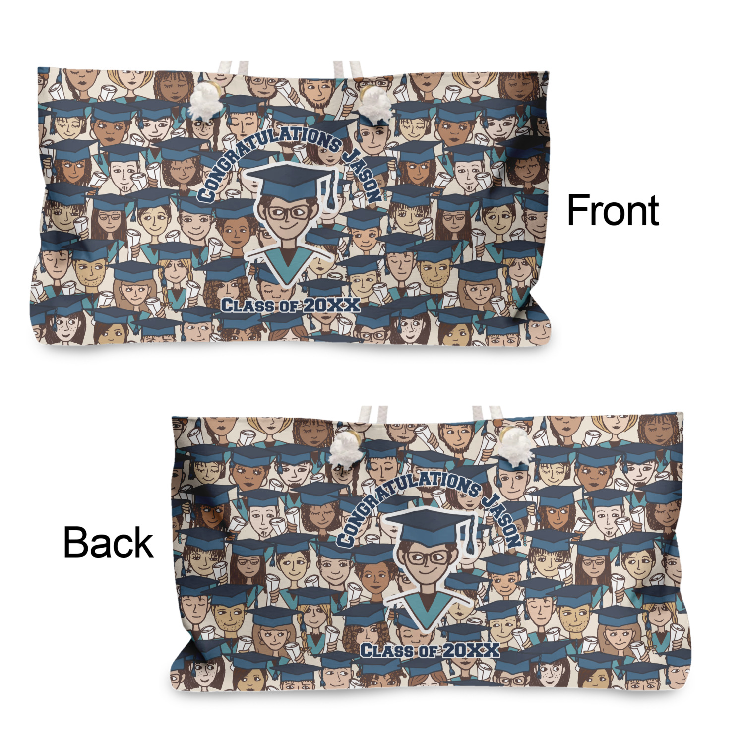 For our design, we chose the layout with a single background & a graphic & text personalization style. We chose a boy graduate as our graphic and added congratulations and his class year as the personalization text. We have many of the other graduates from the background in our system, so you can select a graduate that resembles your graduate more closely. You can also customize the graduate more by changing the graduate's skin, hair & stole colors.