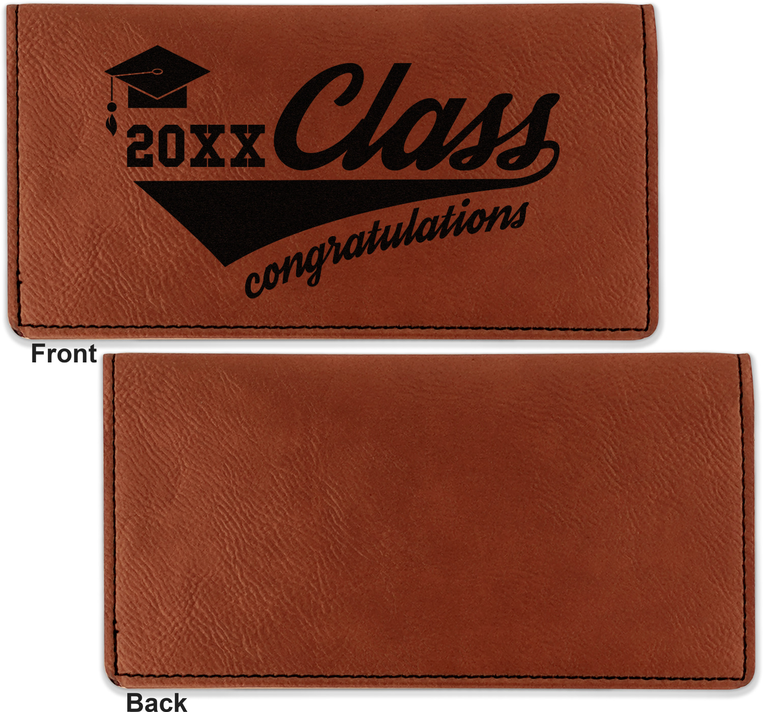 Go into our design center to start personalizing. Your checkbook cover will be laser engraved, making the graphic or text a black color. Choose a fun saying, monogram, or font to go on your checkbook cover. You have the opportunity to do it double or single sided.