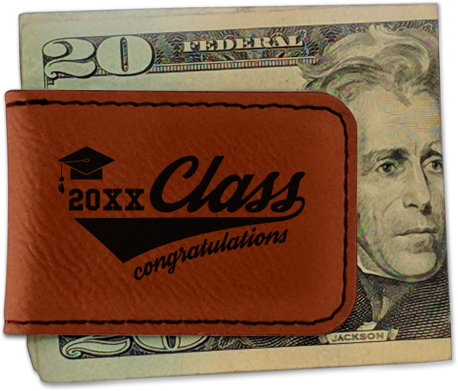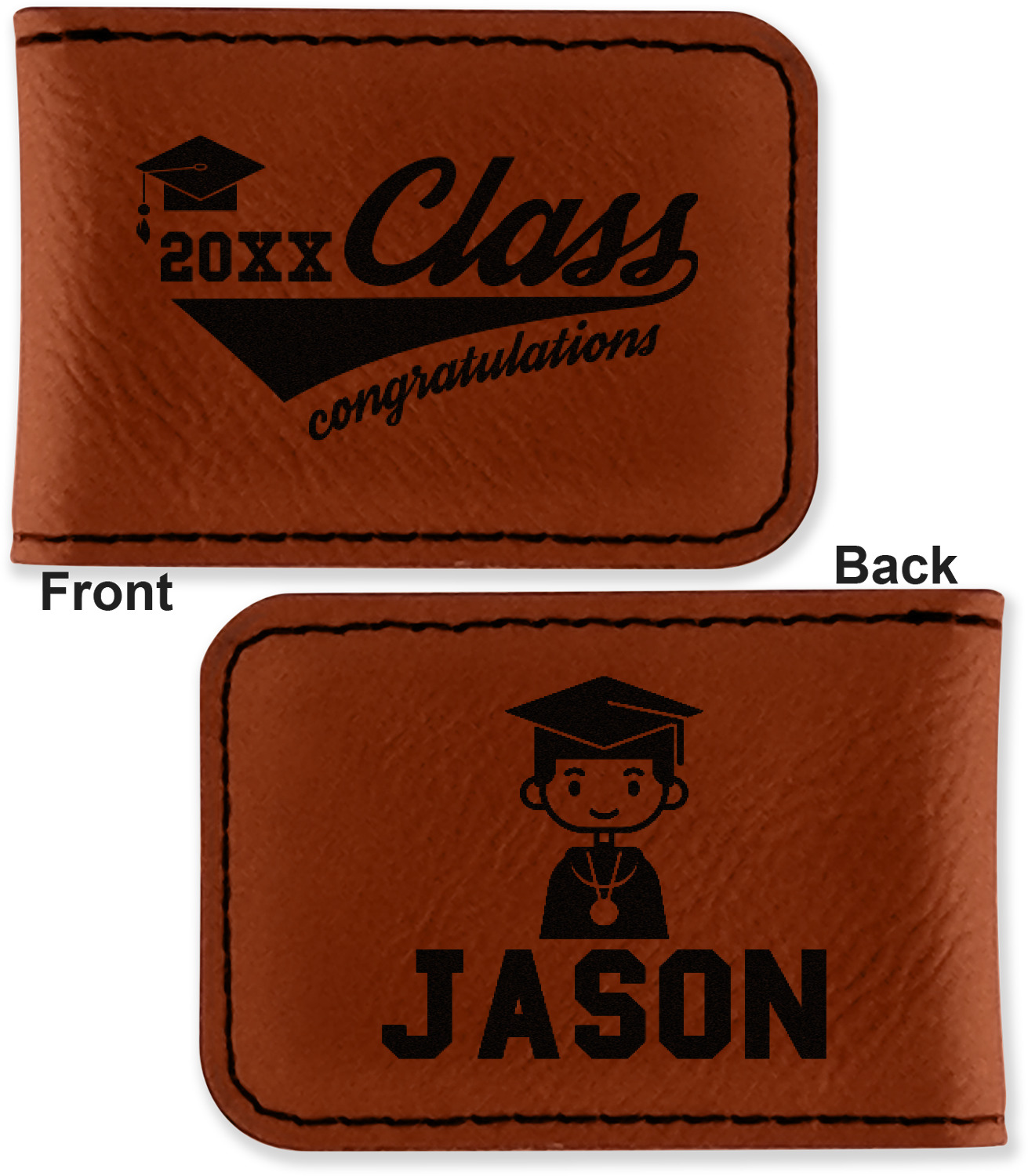 Your money clip will be laser engraved so that the design you choose will come out black. Find a fun graphic, monogram, or font to use to personalize your money clip either on just the front or the front and the back.
