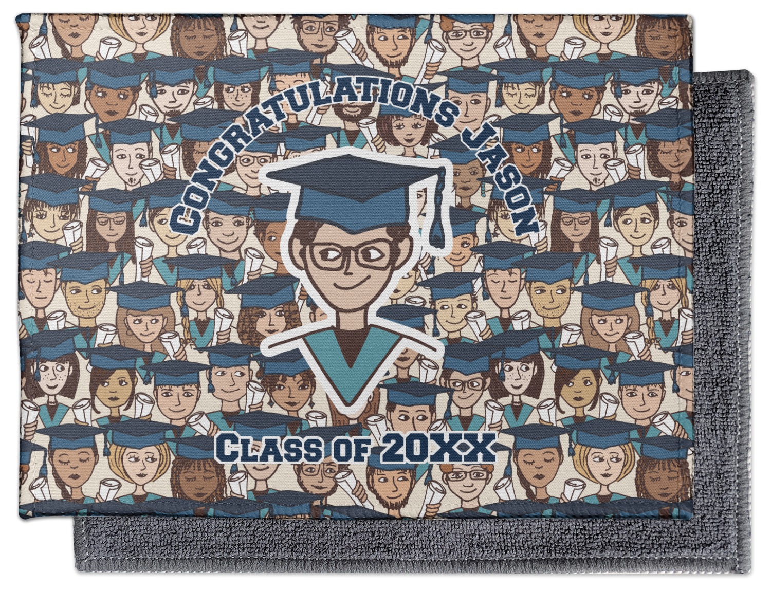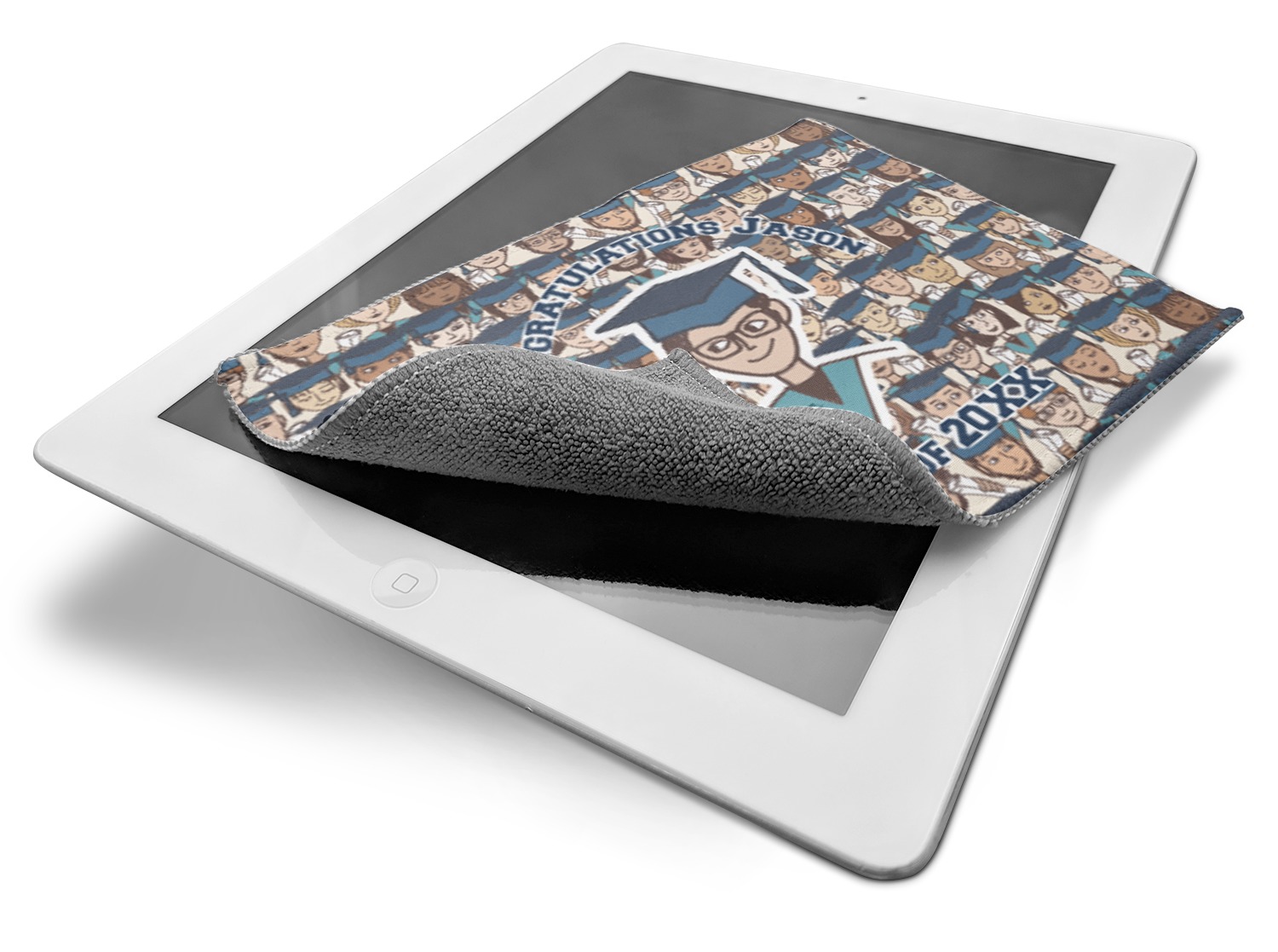 The back of this cleaning cloth is made from a gentle, grey microfiber material, that is masterful at removing smudges, grease, and fingerprints from lenses or electronic screens. The front side of the screen cleaner displays your personalized design in vibrant color. A beautiful stitch lines the edges and secures the microfiber to the polyester top. We provide you with the option of customizing this screen horizontally or vertically, depending on your preferences.
