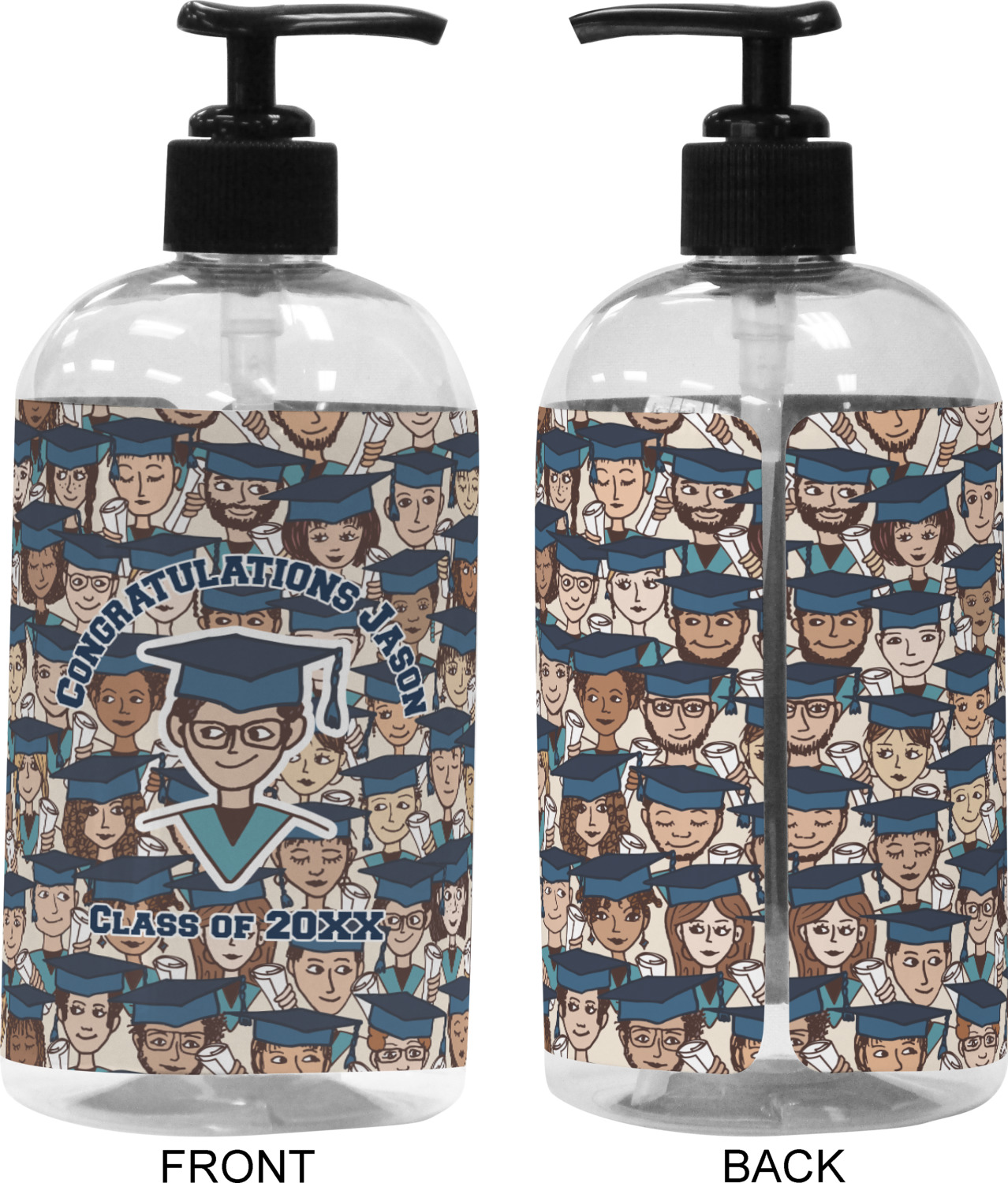 We adhere and wrap your custom printed design around the clear plastic bottle; there is a slight gap at the back for you to see the liquid level. Your design is printed on high gloss vinyl with eco-solvent inks and completely waterproof and will not fade or deteriorate over time. The vinyl is machine cut and adhered by hand to the clear plastic bottle.