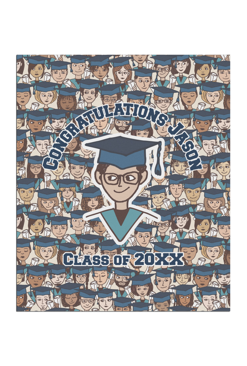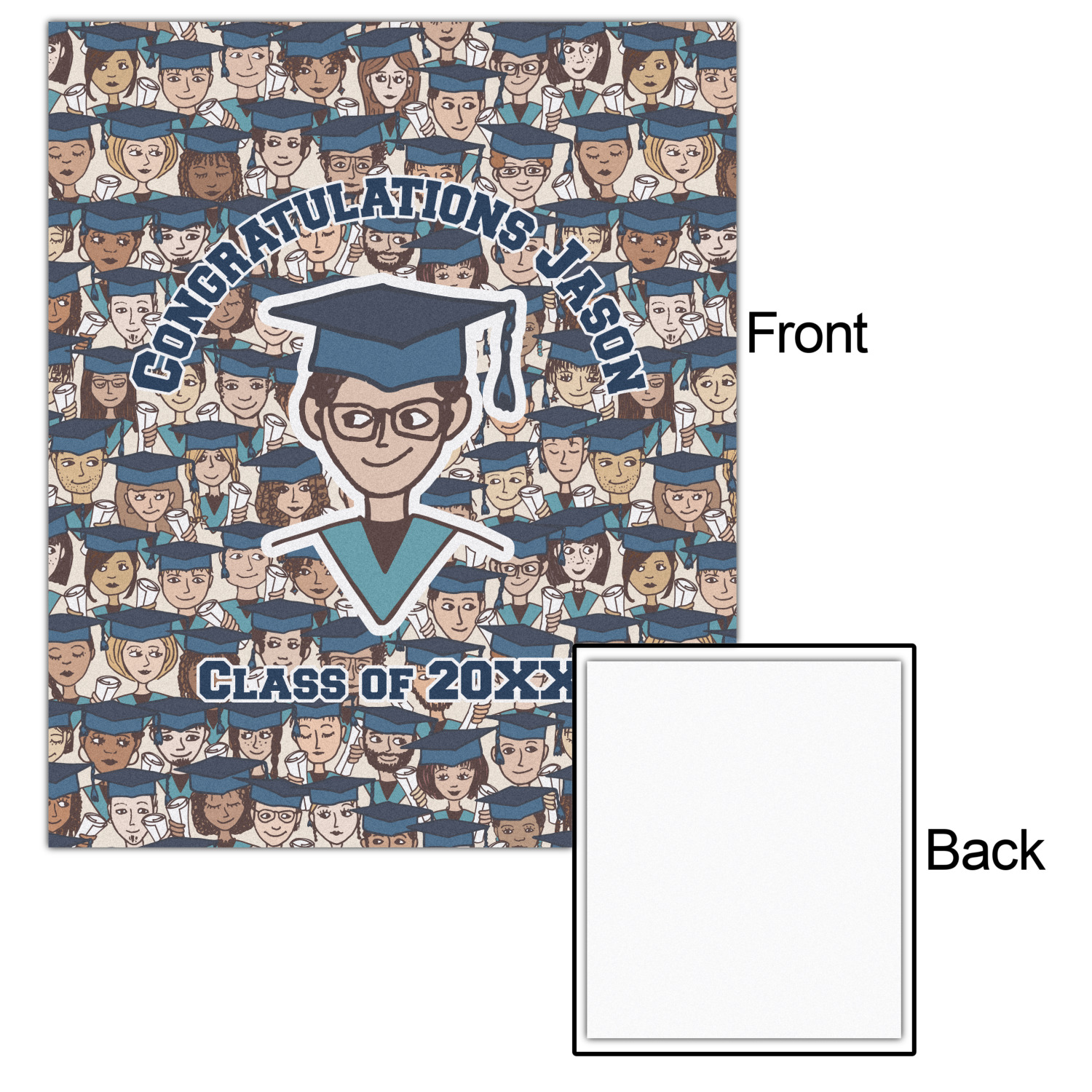 For our design, we chose the layout with a single background & a graphic & text personalization style. We chose a boy graduate as our graphic and added congratulations and his class year as the personalization text. We have many of the other graduates from the background in our system, so you can select a graduate that resembles your graduate more closely. You can also customize the graduate more by changing the graduate's skin, hair & stole colors.