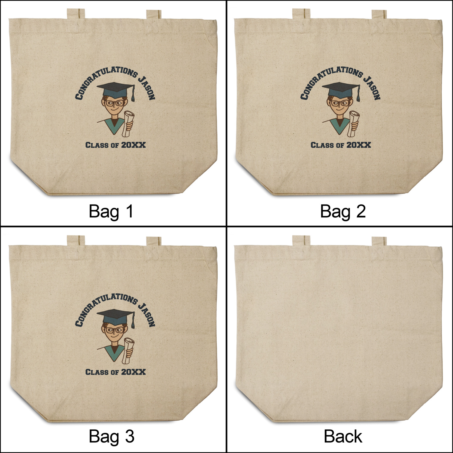 For our design, we chose the layout with a single background & a graphic & text personalization style. We chose a boy graduate as our graphic and added congratulations and his class year as the personalization text. We have many of the other graduates from the background in our system, so you can select a graduate that resembles your graduate more closely. You can also customize the graduate more by changing the graduate's skin, hair & stole colors.