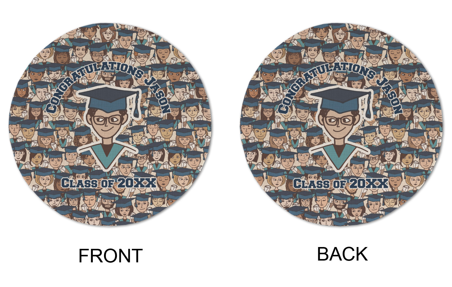 For our design, we chose the layout with a single background & a graphic & text personalization style. We chose a boy graduate as our graphic and added congratulations and his class year as the personalization text. We have many of the other graduates from the background in our system, so you can select a graduate that resembles your graduate more closely. You can also customize the graduate more by changing the graduate's skin, hair & stole colors.