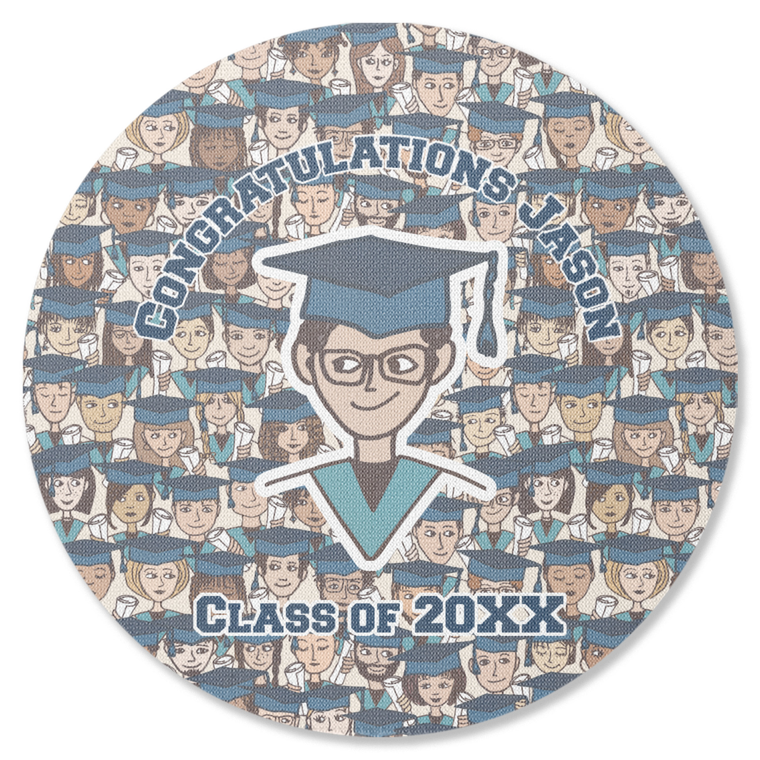For our design, we chose the layout with a single background & a graphic & text personalization style. We chose a boy graduate as our graphic and added congratulations and his class year as the personalization text. We have many of the other graduates from the background in our system, so you can select a graduate that resembles your graduate more closely. You can also customize the graduate more by changing the graduate's skin, hair & stole colors.
