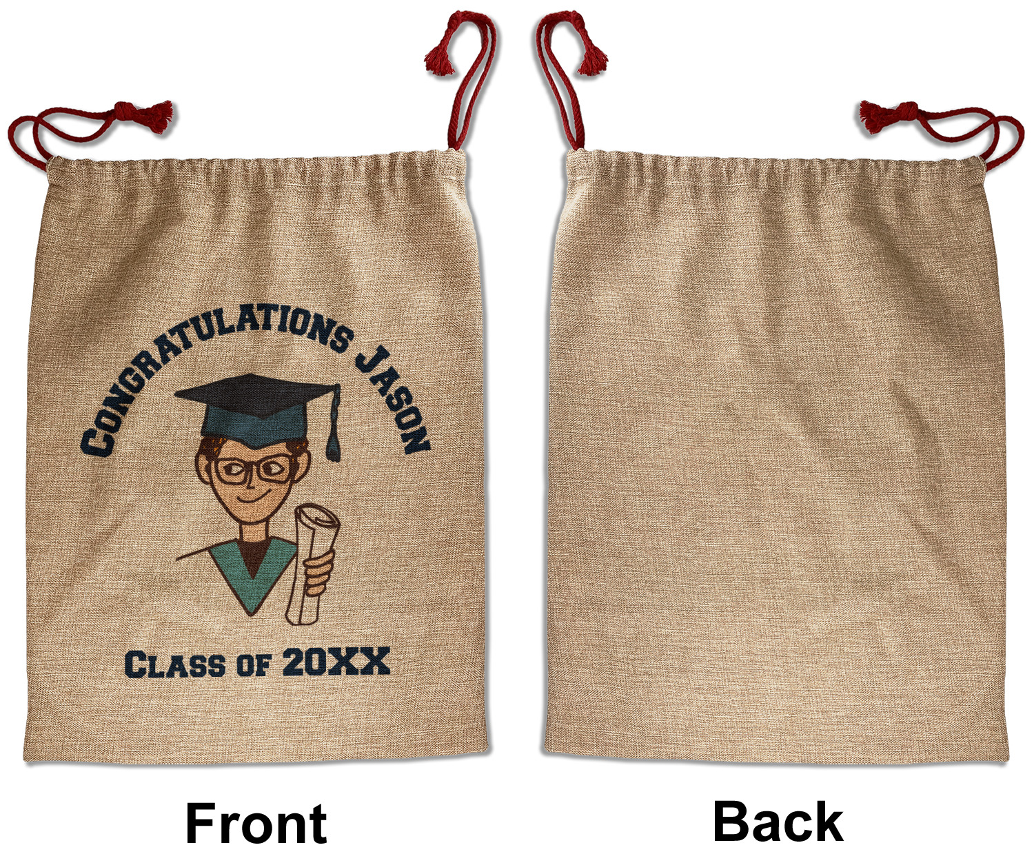 Our Santa sacks print your design on the burlap material giving it a nice rustic, natural design! The burlap material is also machine washable and wrinkle-free, so feel free to fold and store out Santa bags until the next time you need it! Secure your gifts with our red accent drawstring ties at the top of the sack so the mystery of your gift stays a surprise until Christmas day. We offer two types of printing- one side partial print or double-sided partial printing. Design and personalize your own Santa sack in time for the holidays!