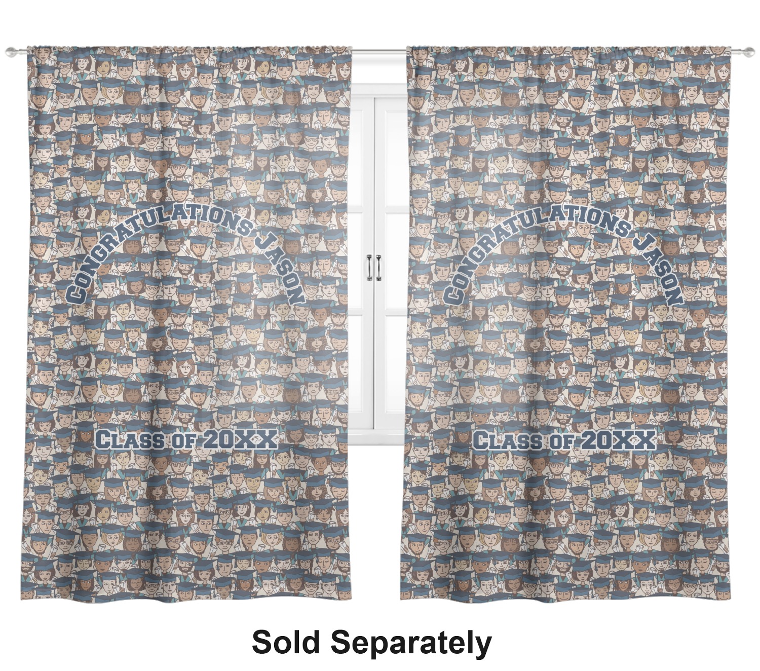 This graduation design depicts a classroom of graduating students all wearing their caps and gowns and holding a diploma in their hands. You can change the color of the mortarboard caps and the color of the stoles to suit your needs.