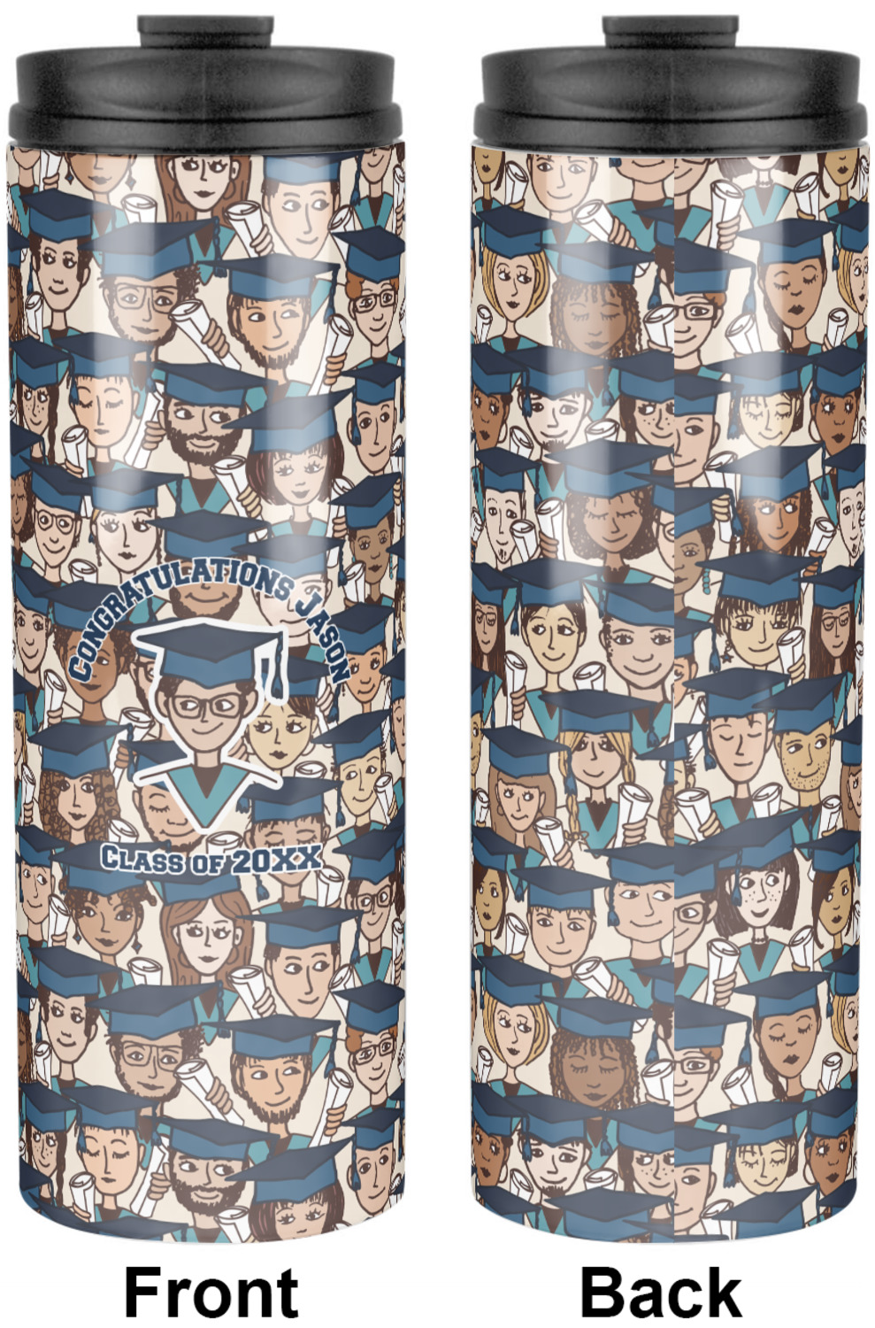Sip your favorite drink on the go with your own custom stainless steel tumbler! Our slim cylinder shape is perfect for holding your drink in hand, in your purse, or in your backpack! This sleek and modern tumbler is a perfect gift for coffee and tea lovers keeping their drinks just the right temperature throughout the day! We offer two sizes, a 16 oz. or 20 oz., to personalize. Browse and customize or design or create your own with our online design studio!