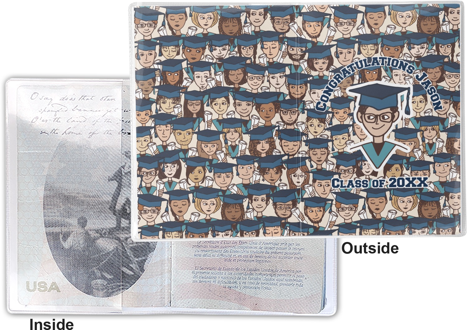 This cover is made of a sturdy clear vinyl with a personalized vinyl insert inside. There is a large and a small pocket on either side to hold the covers of your passport easily and firmly. The passport holder is approximately 7.5" x 5.25", the perfect size to snugly fit your passport. This slim cover is the perfect way to protect your passport without being one more bulky item you have to carry.