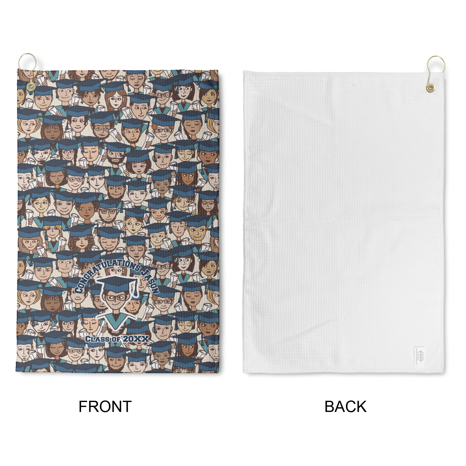 Personalize your design for your towel in our design studio then we will custom print and make it for you. The heavy duty brass grommet and hook are perfect for hanging anywhere you need it to. The waffle weave material is a durable microfiber material that will absorb up to 7 times its weight.