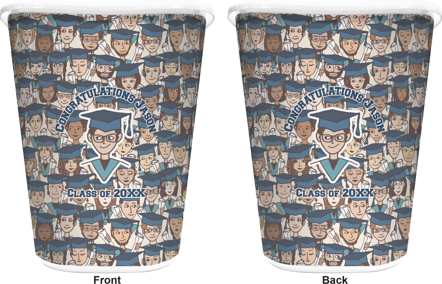 You can choose to purchase these decorative wastebaskets in either a white or a black color that will show on the base and the upper rim. Your customization is printed on a high-gloss, fine-quality vinyl adhesive, and you can choose to either have this adhesive applied to one side only or to both sides. As such, this plastic wastebasket can be single-sided or double-sided, depending on your creative vision. Your customization is printed using durable inks, making the design waterproof and resistant to fading over time.