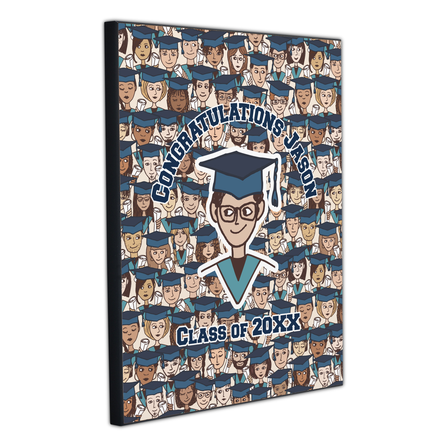 For our design, we chose the layout with a single background & a graphic & text personalization style. We chose a boy graduate as our graphic and added congratulations and his class year as the personalization text. We have many of the other graduates from the background in our system, so you can select a graduate that resembles your graduate more closely. You can also customize the graduate more by changing the graduate's skin, hair & stole colors.