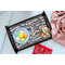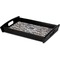 This serving tray with handles features square edges and two rounded sides, creating a very modern look. Each side is fabricated from a beautifully cut, natural wood. The bottom of the interior of the tray displays your customized design in bright, vibrant color. The tray is sold in both a black color and a natural wood look. Each variation of the wood serving tray has two sizes: Small, which is 14" x 10" x 2.25", and Large, which is 19.5" x 13.5" x 2.75".