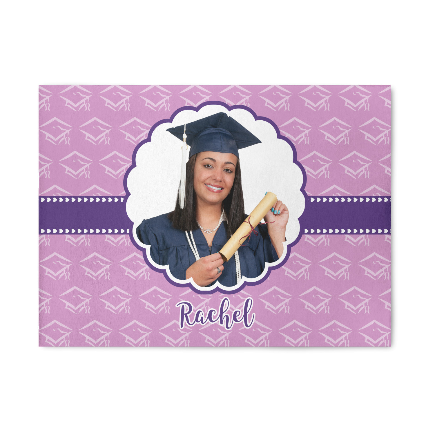 For our design, we chose a mortar cap background in violet. We then layered it with a heart ribbon and a photo / text personalization style. We chose the scalloped label for our female graduate and added her name. There are many other graduate patterns in our system including patterns for math, science, physics etc., so you can easily customize it for you graduate. We also have more masculine ribbons & labels for you male graduate!