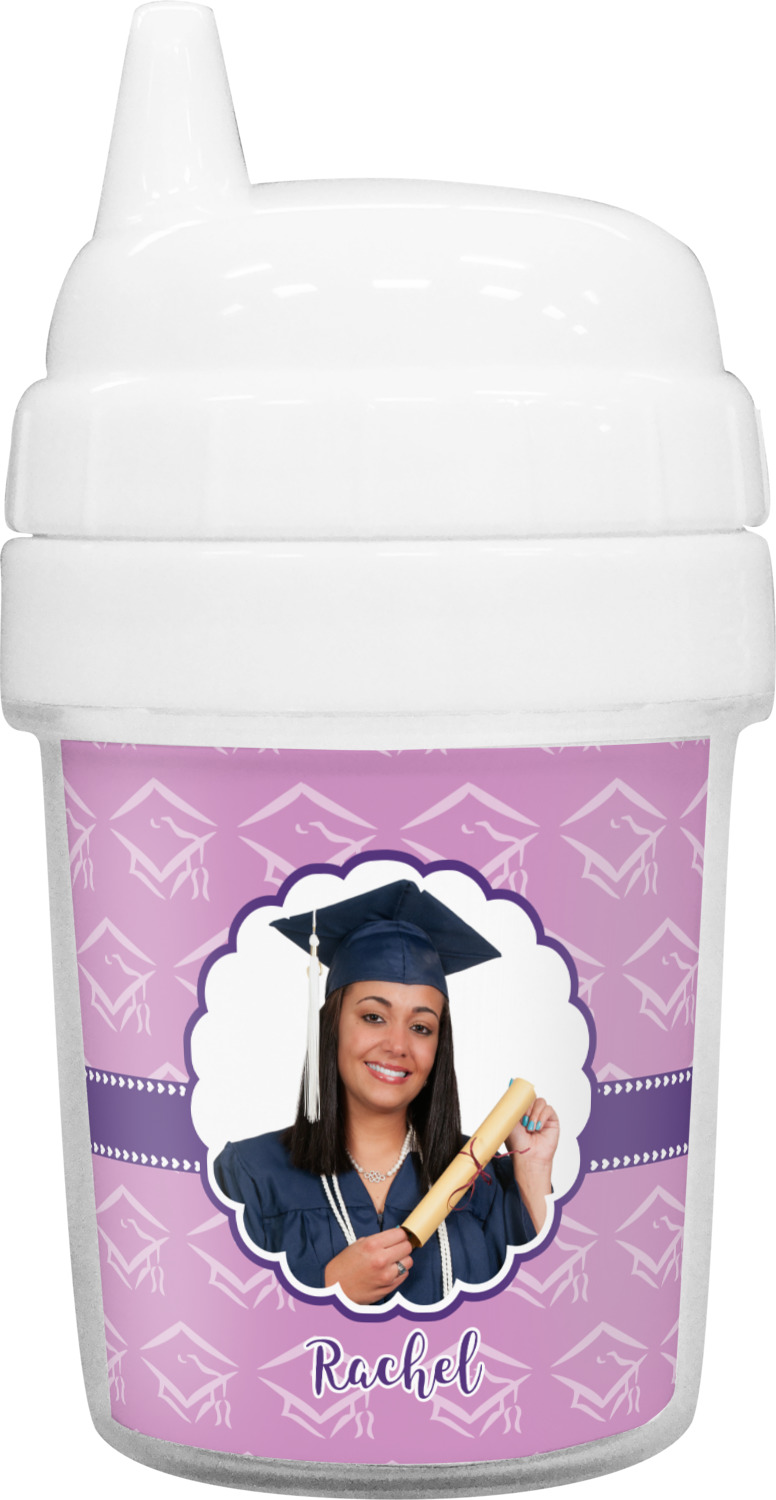 Our toddler cups are free of BPA, and have a twist-open lid so that you can easily fill and clean these cups for your young ones. Each cup also comes with a sippy nozzle to reduce spills. We offer these custom sippy cups in two different sizes; we have a baby sippy cup that holds 5 ounces, and a toddler sippy cup that holds 10 ounces. Your customization is printed on a premium glossy media insert that is placed within these toddler drinking cups.