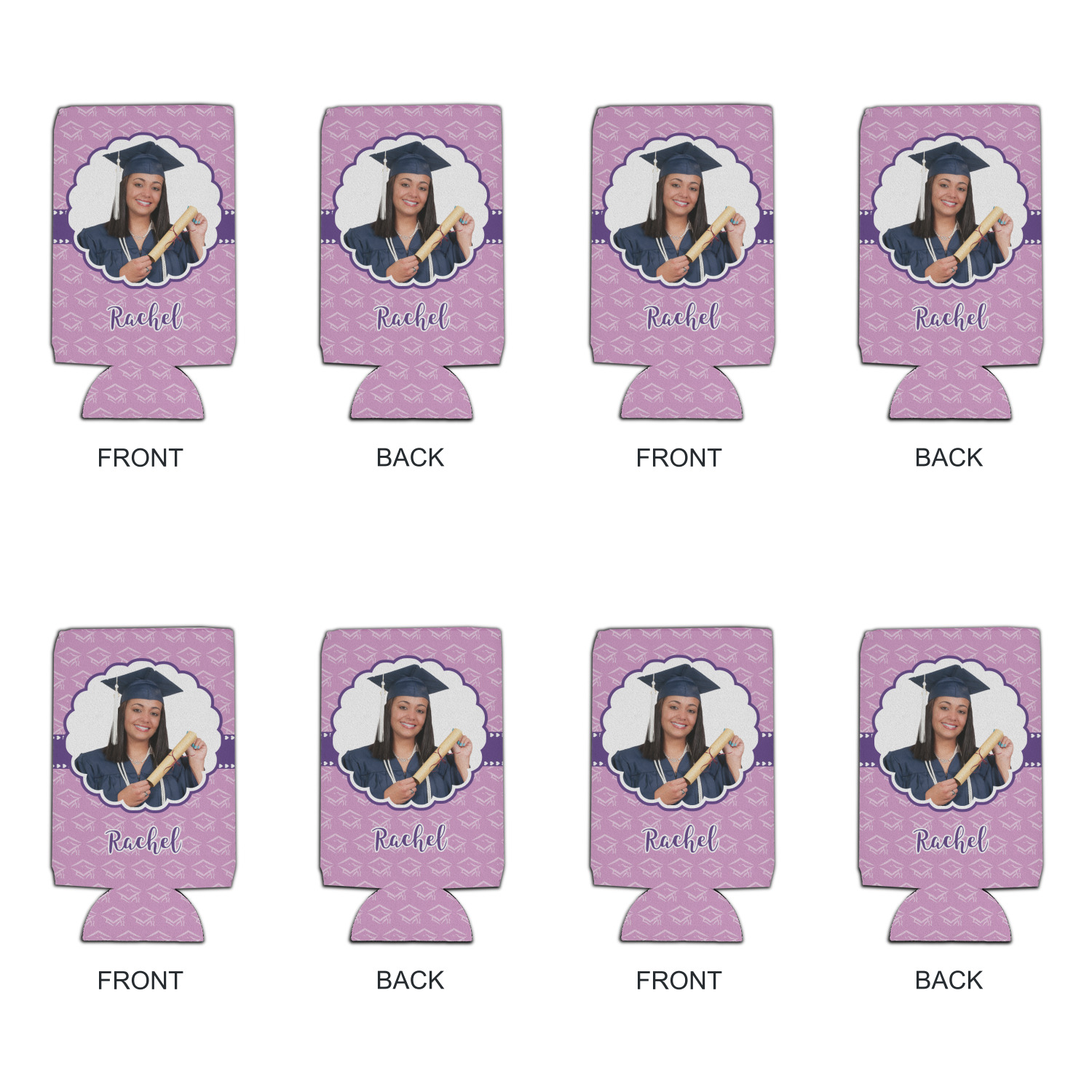 For our design, we chose a mortar cap background in violet. We then layered it with a heart ribbon and a photo / text personalization style. We chose the scalloped label for our female graduate and added her name. There are many other graduate patterns in our system including patterns for math, science, physics etc., so you can easily customize it for you graduate. We also have more masculine ribbons & labels for you male graduate!