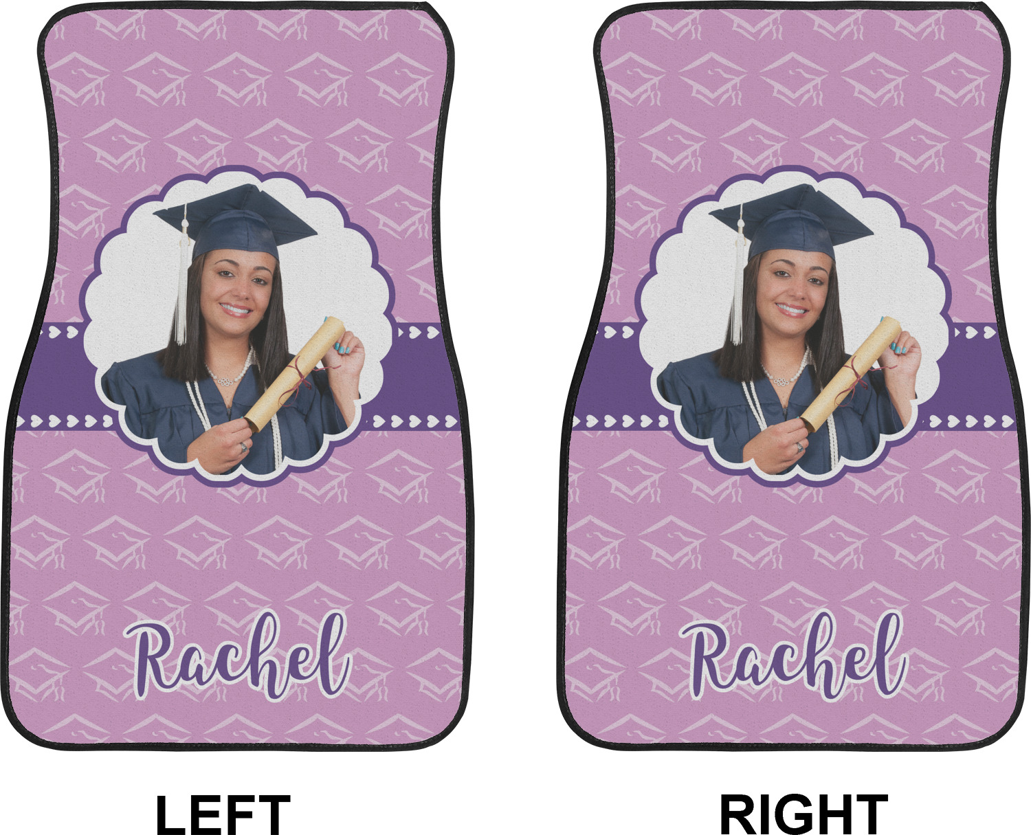 We craft our auto floor mats mats from polyester, apply a black finish to the edges, and lined at the bottom to prevent slippage. These mats protect your floors from grass, mud, and any accidental spills. We display your personalized design on the front face of each mat. The sizes of these car floor liners are standardized to provide a versatile fit for all vehicles. The front rows car mats measure at 17 by 26.5 inches, while the back rows measure at 17 by 13 inches. We sell three packages of car floor mats. You can purchase a pair of front row car mats, a pair of back row car mats, or a set of front row and back row car mats. To make an informed purchase, we recommend measuring the surface area of your car floors.