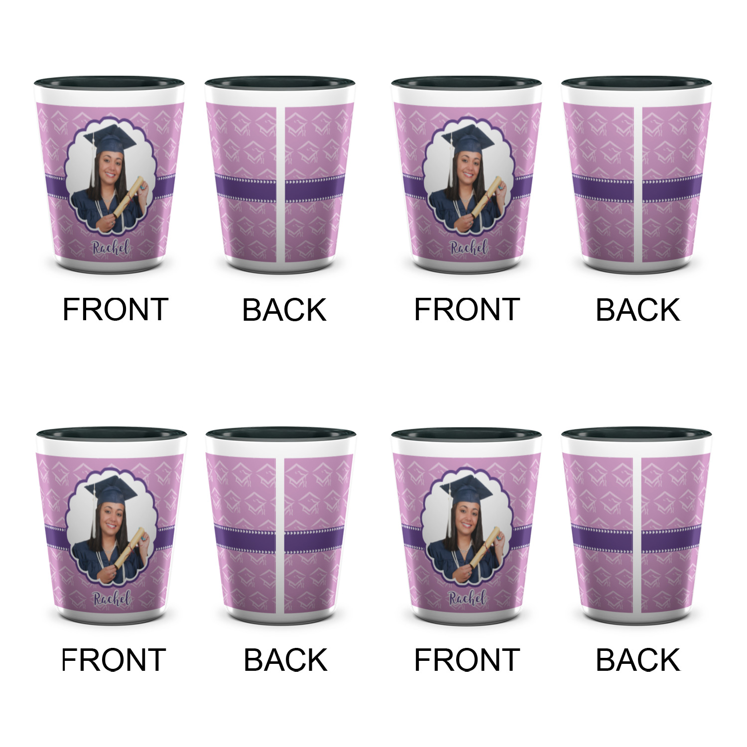Made from ceramic these shot glasses are printed in full color with the design of your choice. These are a standard 1.5oz size and stand 2.25" tall. Available in a full white ceramic or a two-tone with a black color inside the shot glass. Buy a single or a set of 4, all of which can be designed separately to get you just what you want and need.